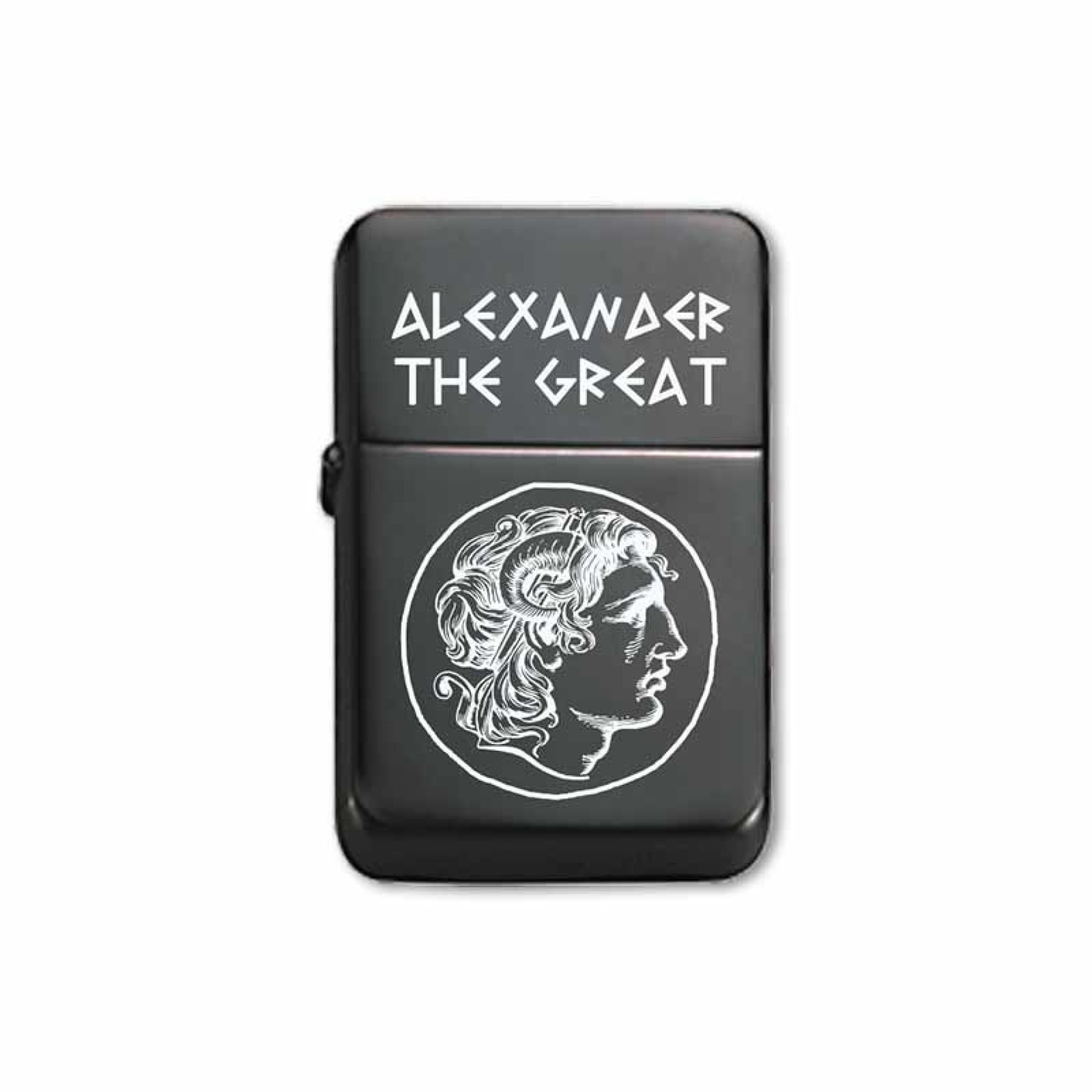 Μεταλλικός αναπτήρας με απεικόνιση του Μεγάλου Αλεξάνδρου και την επιγραφή Alexander the Great. Κομψός μαύρος σχεδιασμός, ιδανικός για συλλέκτες και όσους αγαπούν την ελληνική ιστορία. Δεν περιέχει υγρό αναπτήρων και απαιτείται γέμισμα πριν από τη χρήση. Κατάλληλος για καθημερινή χρήση ή ως αναμνηστικό από την Ελλάδα.