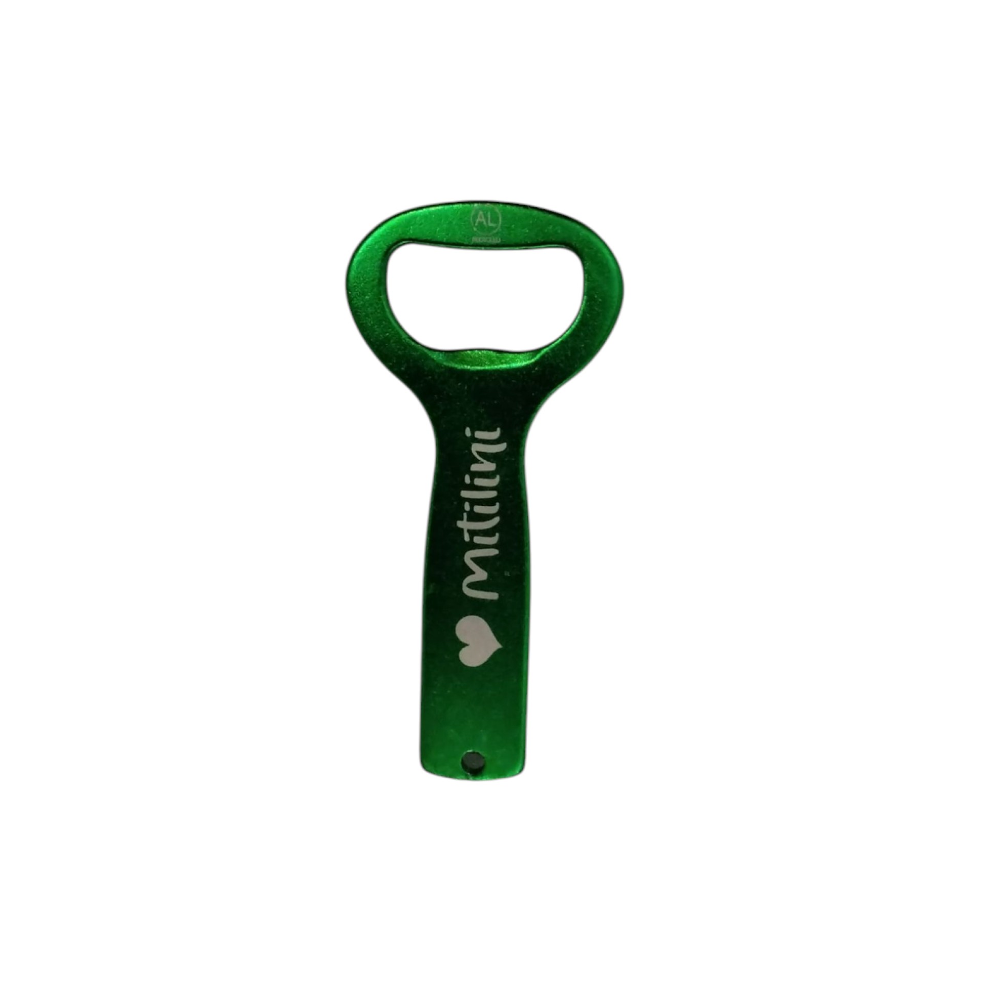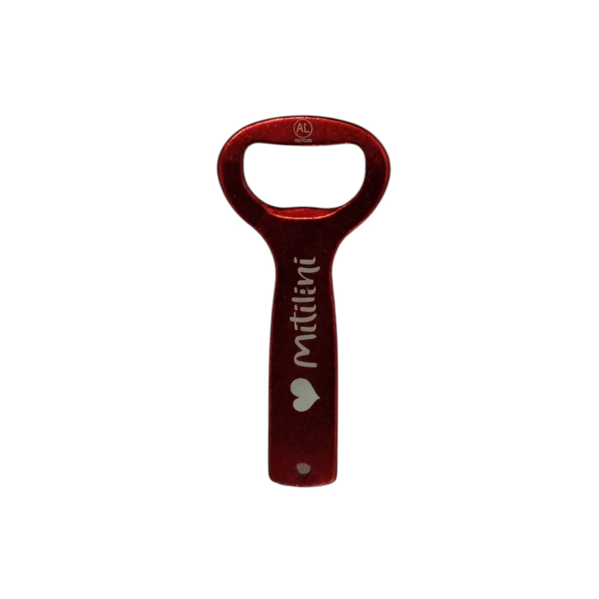 Το μεταλλικό ανοιχτήρι μπουκαλιών Mitilini είναι κομψό, ανθεκτικό και ιδανικό για καθημερινή χρήση. Κατασκευασμένο από ελαφρύ αλουμίνιο υψηλής ποιότητας, προσφέρει άνετο κράτημα και εύκολο άνοιγμα φιαλών. Διαθέσιμο σε τέσσερα χρώματα: κόκκινο, μαύρο, μπλε και πράσινο. Χαρακτηριστικά: Υλικό: Αλουμίνιο Διαστάσεις: 8 × 4 cm Ελαφρύ και εύκολο στη μεταφορά Με διακριτικό σχέδιο καρδιάς Κατάλληλος για μπουκάλια μπύρας και αναψυκτικών
