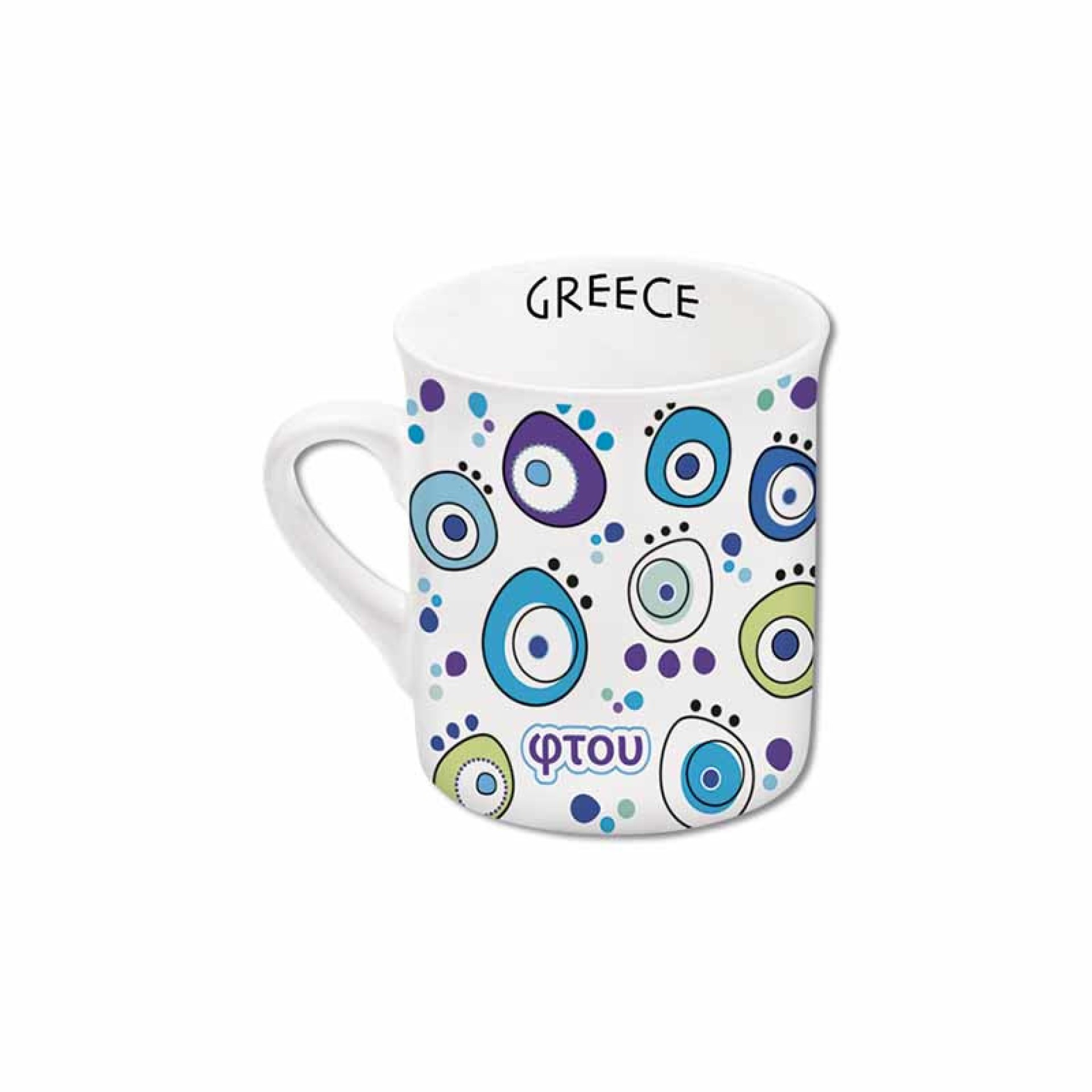 Κεραμική κούπα espresso “Φτου”, εμπνευσμένη από το αγαπημένο ελληνικό σύμβολο του ματιού. Με πολύχρωμους συνδυασμούς μπλε, γαλάζιου και πράσινου, αποπνέει χαρά και θετική ενέργεια — ένα γούρι για την κάθε σου μέρα!