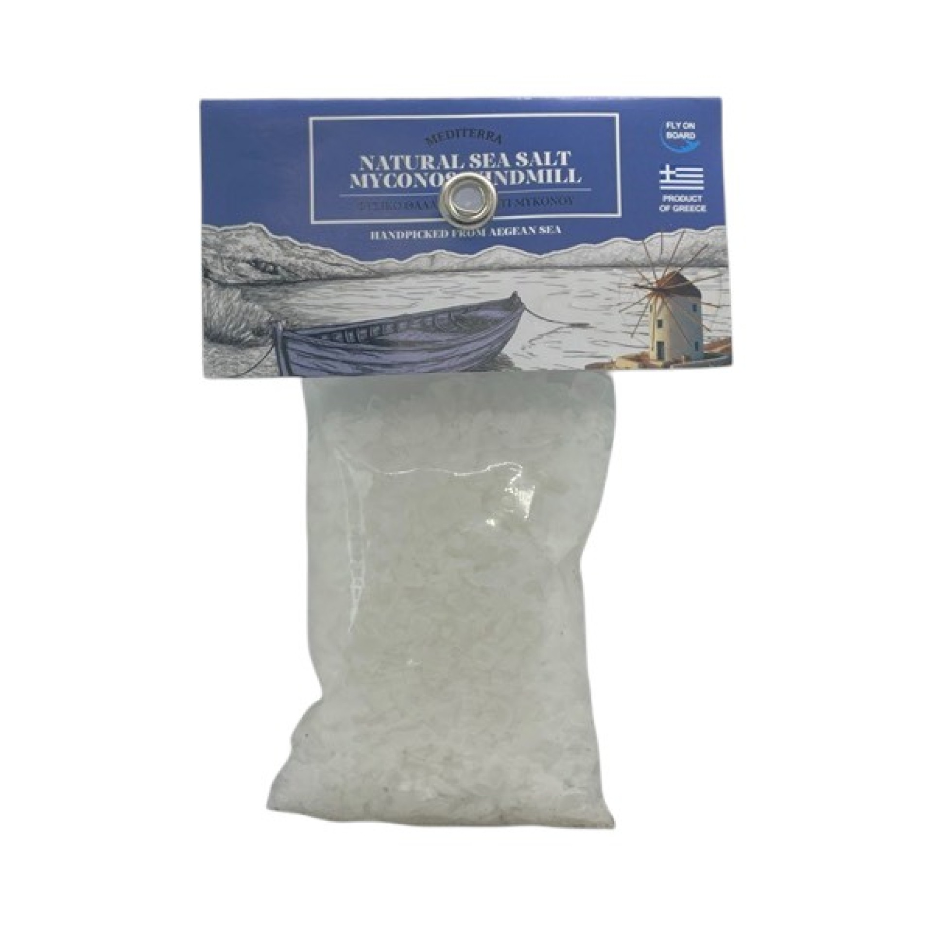 Εκλεκτό φυσικό θαλασσινό αλάτι εμπνευσμένο από τη Μύκονο και τη μοναδική αιγαιοπελαγίτικη παράδοση. Με καθαρή, ισορροπημένη αλμύρα και τραγανή υφή, είναι ιδανικό για καθημερινή μαγειρική, σαλάτες, ψάρια, θαλασσινά, κρέατα και ως τελικό καρύκευμα.