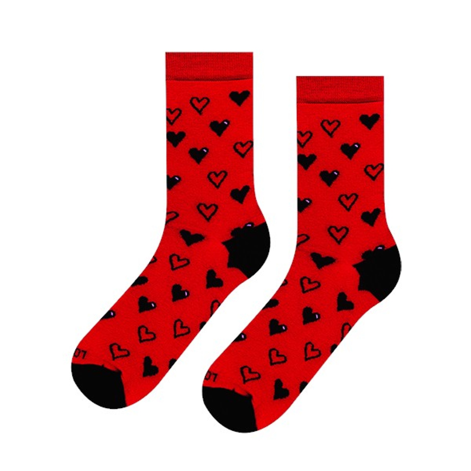 Ρομαντικές, χαριτωμένες και γεμάτες θετική διάθεση! Οι κόκκινες κάλτσες με μοτίβο καρδούλες είναι η τέλεια επιλογή για να δώσεις μια ζεστή και παιχνιδιάρικη πινελιά στο καθημερινό σου στυλ. Με μαύρη μύτη και φτέρνα για όμορφη αντίθεση και μοτίβο καρδιών που τραβά την προσοχή.