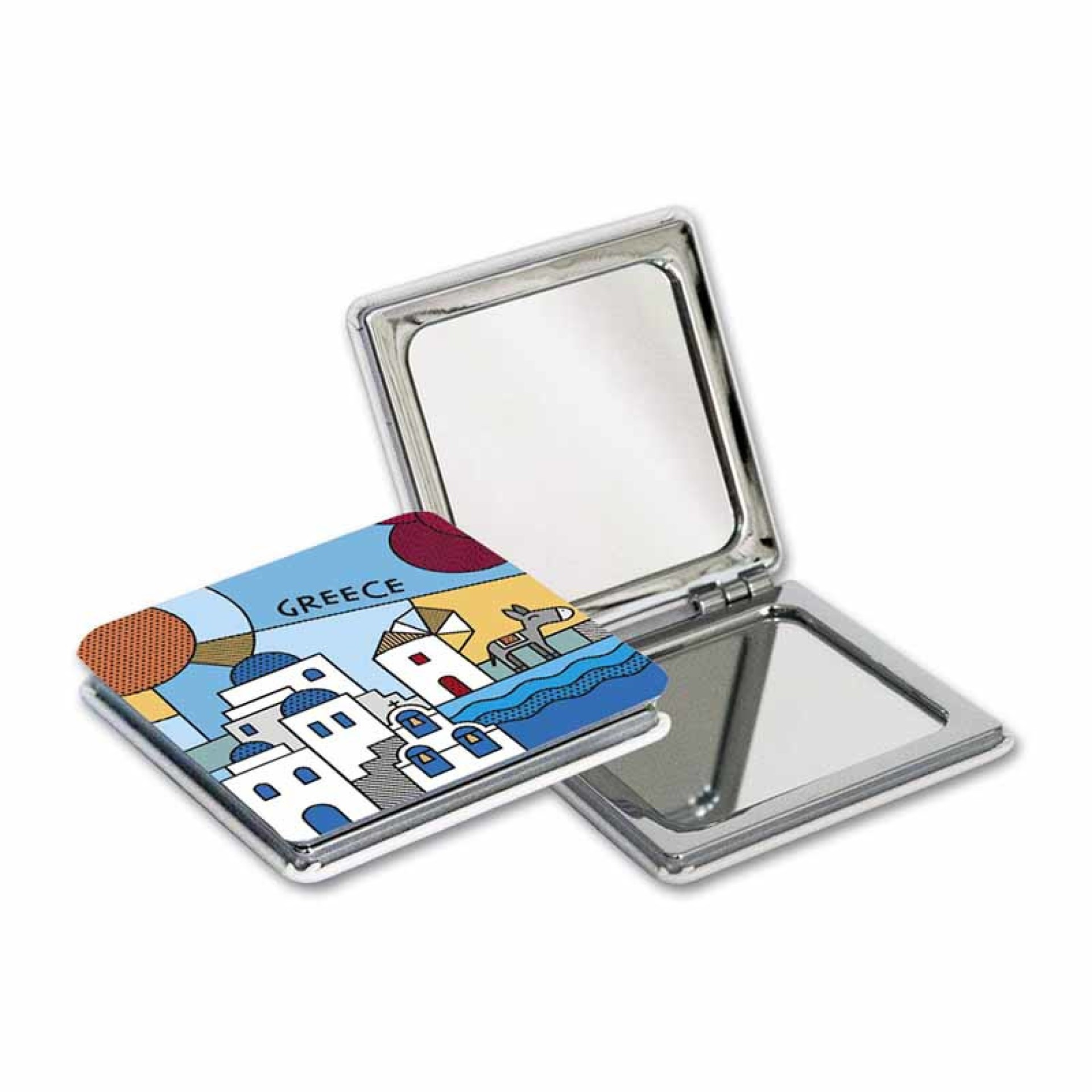 Το καθρεφτάκι GREECE Μπλε του Αιγαίου είναι εμπνευσμένο από τα γραφικά ελληνικά νησιά, τα λευκά σπιτάκια, τους ανεμόμυλους και το απέραντο γαλάζιο.