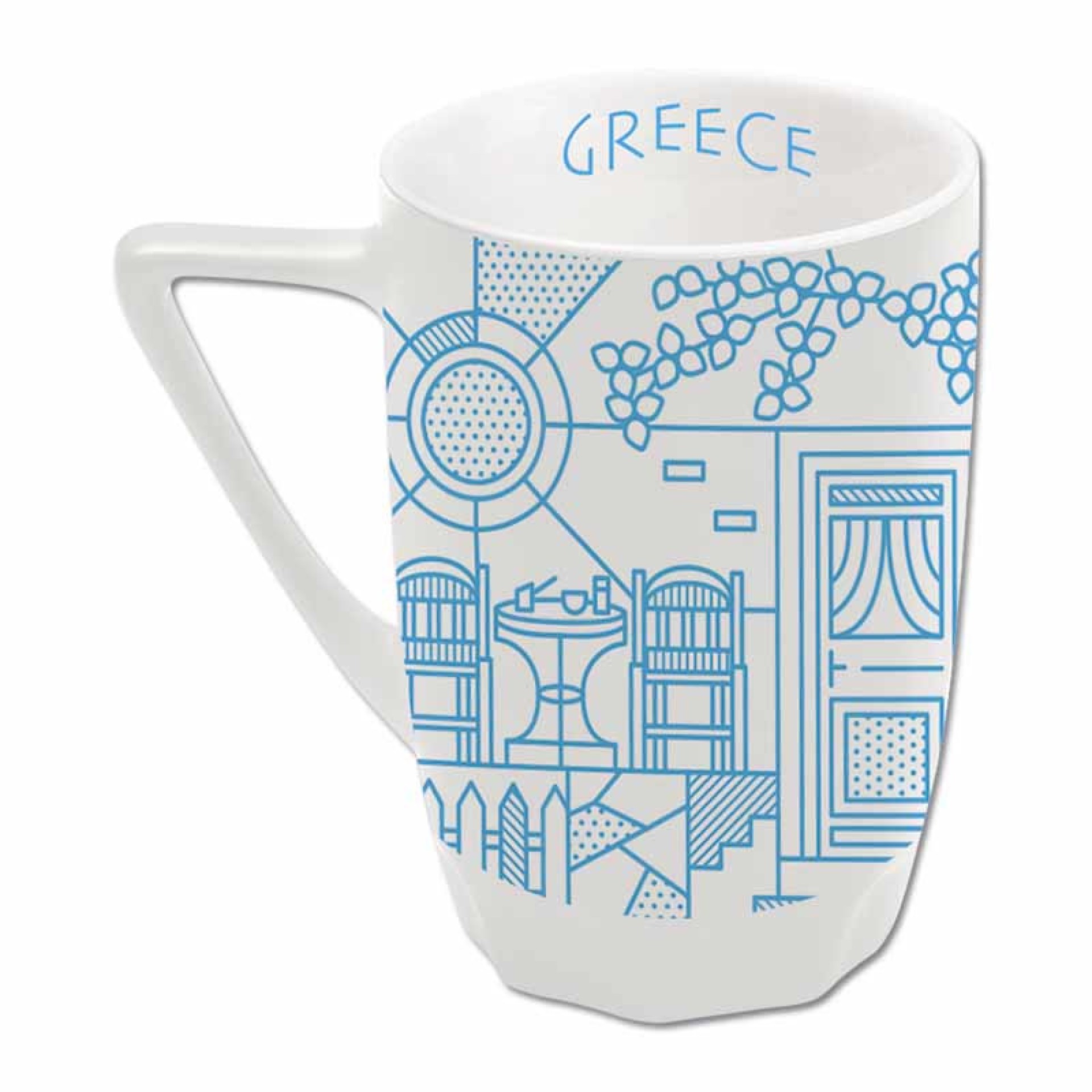 Η σειρά “Line Café Greece” αποτυπώνει με μοντέρνο, αφαιρετικό τρόπο τη γοητεία των ελληνικών καφενείων και των στενών των νησιών. Με καθαρές γραμμές και γεωμετρική αισθητική, απεικονίζει παραθυρόφυλλα, καρέκλες, τραπέζια, γάτες και φυτά — εικόνες που χαρακτηρίζουν την καθημερινή ζωή στην Ελλάδα. Το σχέδιο είναι ζωγραφισμένο σε λεπτό line art, με λευκό ή μπλε χρώμα πάνω σε μαύρο ή λευκό φόντο, προσδίδοντας κομψότητα και καλοκαιρινή φρεσκάδα. Μια σειρά που συνδυάζει παράδοση, απλότητα και design — ιδανική για όσους αγαπούν τη μεσογειακή αισθητική και τη χαλαρή διάθεση του ελληνικού καλοκαιριού. Διατίθεται σε: Μαύρο φόντο με λευκό σχέδιο Λευκό φόντο με μπλε σχέδιο Υλικό: Κεραμικό Χωρητικότητα: 360 ml Χρώματα: Μαύρο / Λευκό Φινίρισμα: Ματ Κατάλληλη για: Ζεστά & κρύα ροφήματα Πλένεται στο πλυντήριο πιάτων Χώρα προέλευσης: Ελλάδα