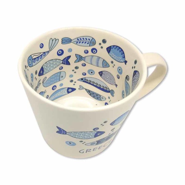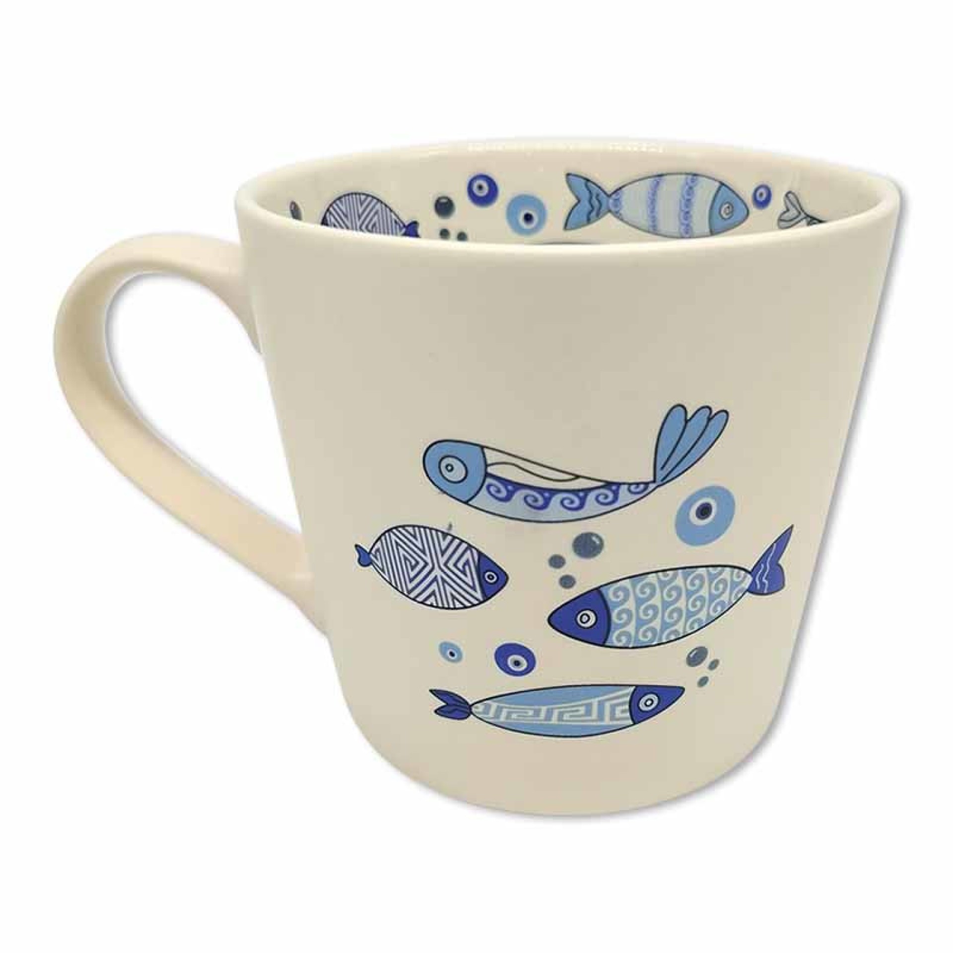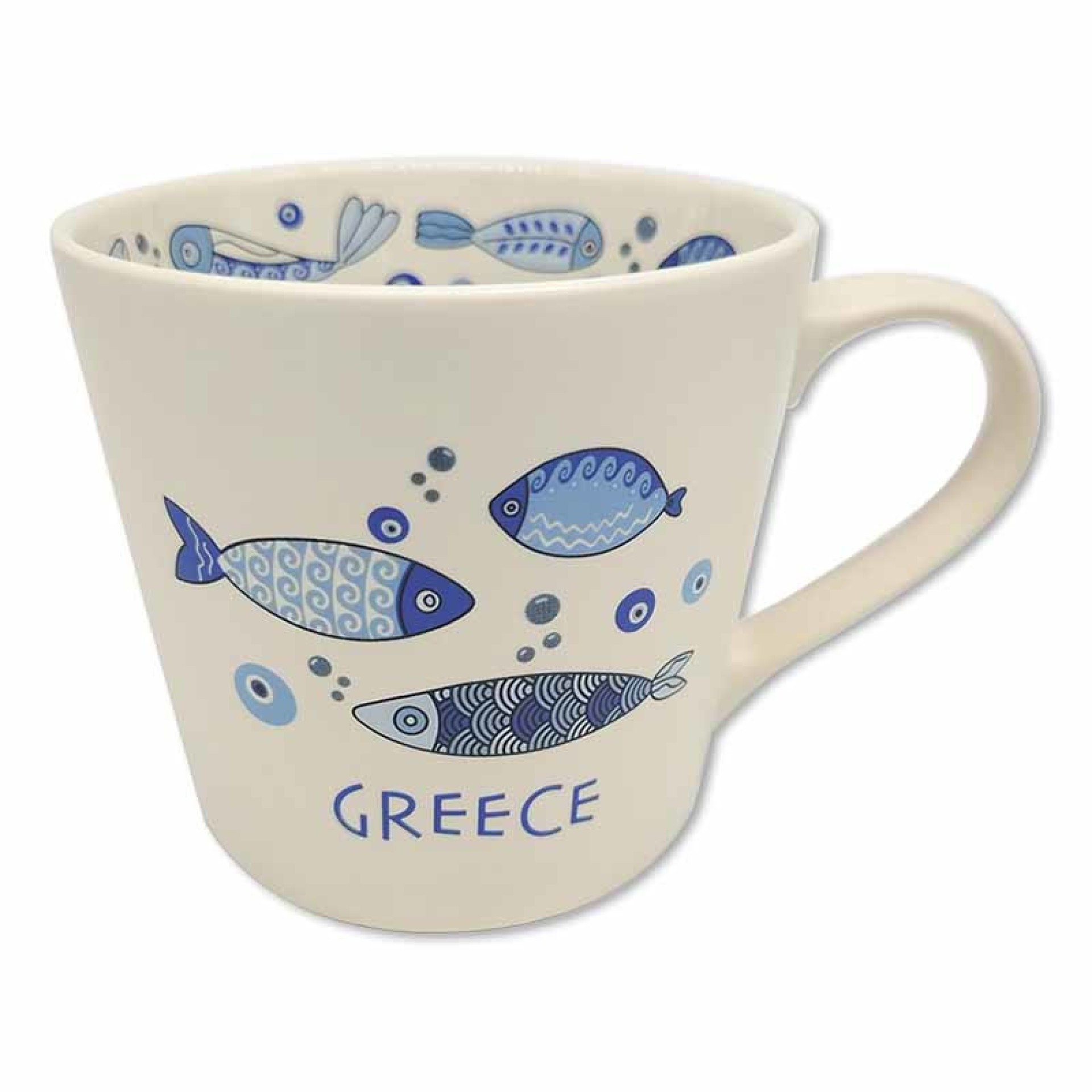 Μια κούπα γεμάτη… Ελλάδα και θάλασσα! Η κεραμική κούπα “GREECE – Blue Fish” είναι εμπνευσμένη από τη μαγεία του Αιγαίου και τη θαλάσσια ζωή των ελληνικών νησιών. Διακοσμημένη μέσα και έξω με μπλε ψαράκια και ματάκια, αποπνέει χαρά, καλοκαιρινή διάθεση και τη γαλήνη της θάλασσας. Το λευκό φόντο αναδεικνύει τις αποχρώσεις του μπλε, δημιουργώντας ένα αρμονικό και χαρούμενο design. Είναι ιδανική για δώρο, σουβενίρ ή απλώς για να ξεκινάτε τη μέρα σας με ένα φλιτζάνι γεμάτο Ελλάδα! Χαρακτηριστικά: Υλικό: Κεραμικό υψηλής ποιότητας Χωρητικότητα: 430 ml Σχέδιο: Μπλε ψάρια και μάτια – εσωτερικά & εξωτερικά της κούπας Επιγραφή: “GREECE” Κατάλληλη για πλυντήριο πιάτων & φούρνο μικροκυμάτων Ιδανική ως αναμνηστικό ή καλοκαιρινό δώρο