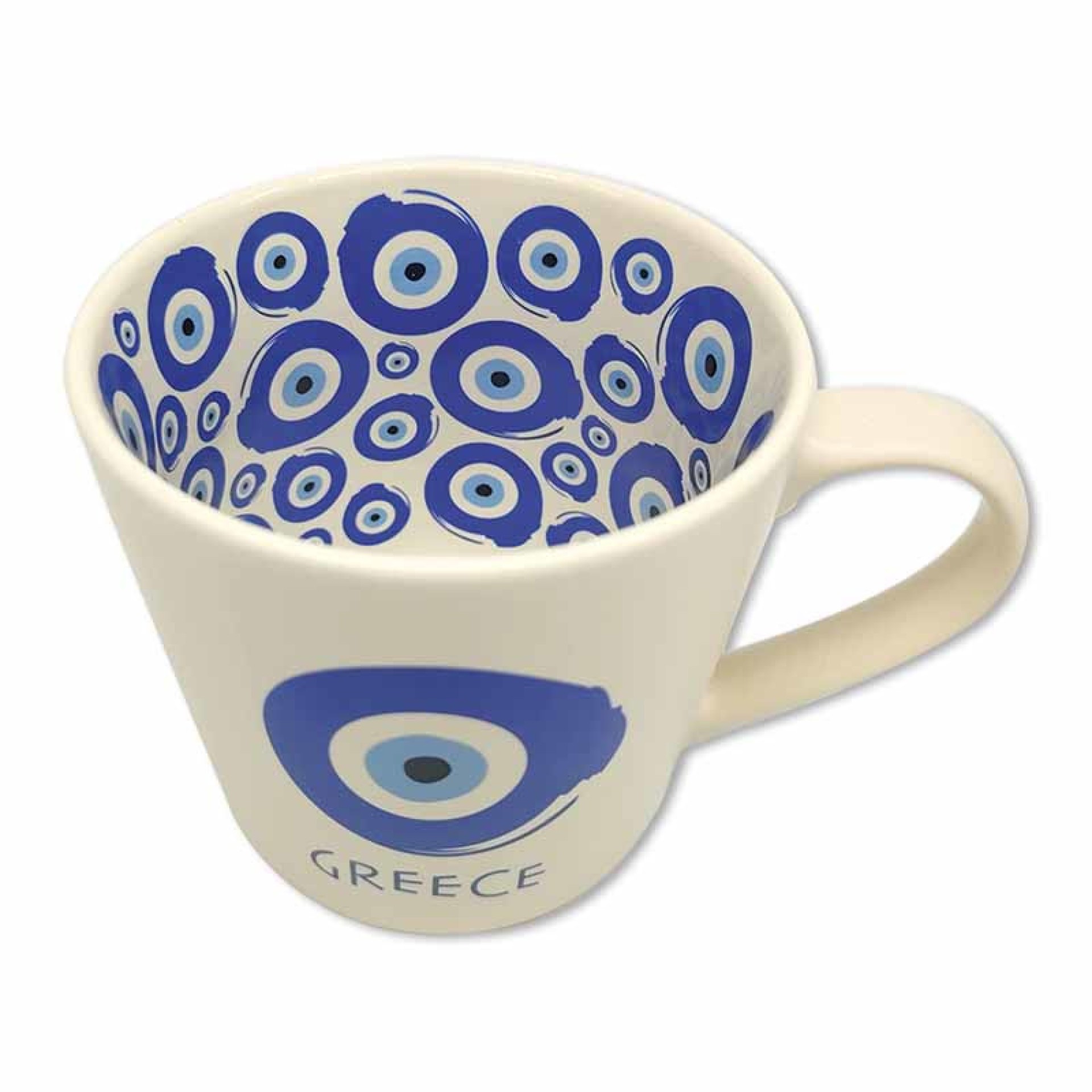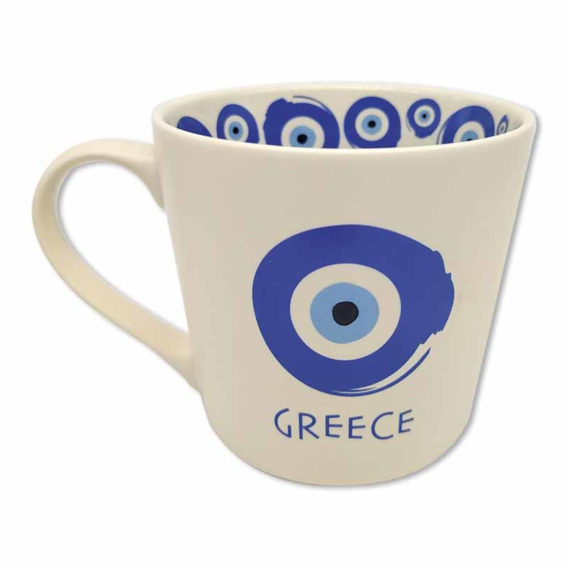 Η κλασική ελληνική τύχη… σε μια κούπα! Η κεραμική κούπα GREECE Μάτι είναι διακοσμημένη μέσα και έξω με μπλε “μάτια”, σύμβολα προστασίας και θετικής ενέργειας. Το design με τις αποχρώσεις του μπλε και του λευκού αποπνέει δροσιά και ελληνικό καλοκαίρι. Η επιγραφή “GREECE” στο εξωτερικό της τονίζει τον ελληνικό της χαρακτήρα, κάνοντάς τη ιδανική για δώρο, σουβενίρ ή την καθημερινή σας χρήση. Χαρακτηριστικά: Υλικό: Κεραμικό υψηλής ποιότητας Χωρητικότητα: 430 ml Σχέδιο: Μάτια σε μπλε αποχρώσεις, εσωτερικά & εξωτερικά Επιγραφή: “GREECE” Κατάλληλη για πλυντήριο πιάτων & φούρνο μικροκυμάτων Ελληνικό design, ιδανικό δώρο ή αναμνηστικό