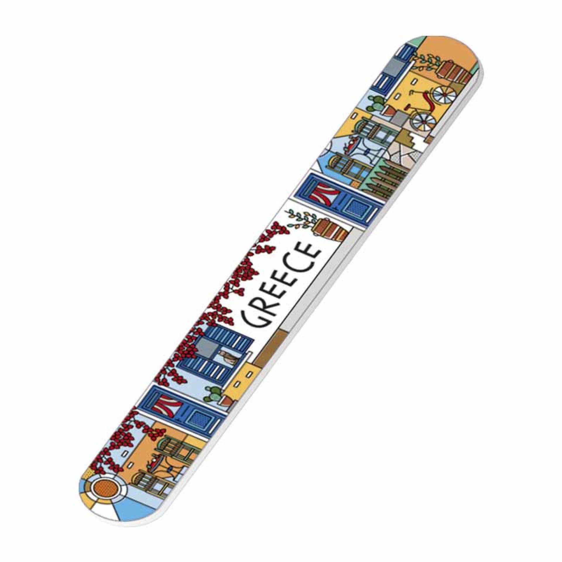 Η λίμα νυχιών GREECE Καφενείο - Ποδήλατο αποτυπώνει τη γοητεία του παραδοσιακού ελληνικού καφενείου με ζωντανά χρώματα και λεπτομέρειες. Το σχέδιο με ποδήλατο, γλάστρες, τραπεζάκια και μπλε παραθυρόφυλλα θυμίζει καλοκαιρινό απόγευμα σε νησί. Είναι διπλής όψης, κατάλληλη για σχήμα και φινίρισμα νυχιών, ενώ αποτελεί και υπέροχο αναμνηστικό από την Ελλάδα. Χαρακτηριστικά: Υλικό: Ανθεκτική λίμα με λεία επιφάνεια Διπλής όψης για σχήμα & λείανση Σχέδιο: Ελληνικό καφενείο με ποδήλατο Διαστάσεις: 17.8 x 1.9 εκ. Ελαφριά, ανθεκτική και εύχρηστη Ιδανική για ταξίδι ή δώρο Ελληνικό σχέδιο – αυθεντικό σουβενίρ