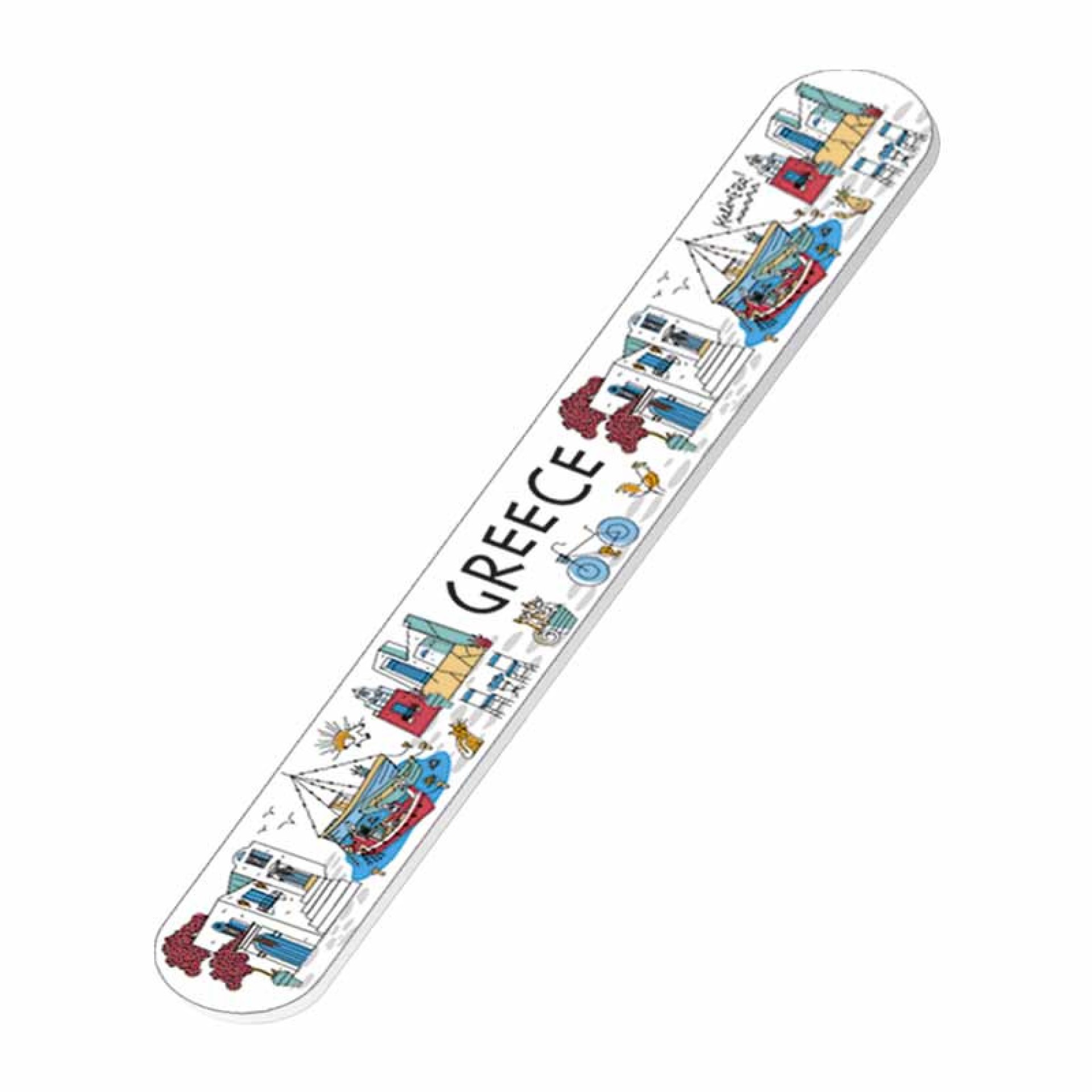 Η λίμα νυχιών GREECE Boats είναι εμπνευσμένη από τα ελληνικά νησιά και την καλοκαιρινή αύρα του Αιγαίου. Διακοσμημένη με παραδοσιακά σπιτάκια, καραβάκια και γάτες, αποπνέει την αυθεντική γοητεία της Ελλάδας. Είναι διπλής όψης, ιδανική για το λιμάρισμα και τη λείανση των νυχιών, ενώ χάρη στο μικρό της μέγεθος είναι εύχρηστη και ιδανική για ταξίδι. Χαρακτηριστικά: Υλικό: Ανθεκτική λίμα με λεία επιφάνεια Διπλής όψης για σχήμα & φινίρισμα Σχέδιο: Καραβάκια, ελληνικά σπίτια και γάτες Διαστάσεις: 17.8 x 1.9 εκ. Ελαφριά και εύκολη στη χρήση Ιδανική για ταξίδι ή καθημερινή χρήση Ελληνικό σχέδιο – τέλειο αναμνηστικό δώρο