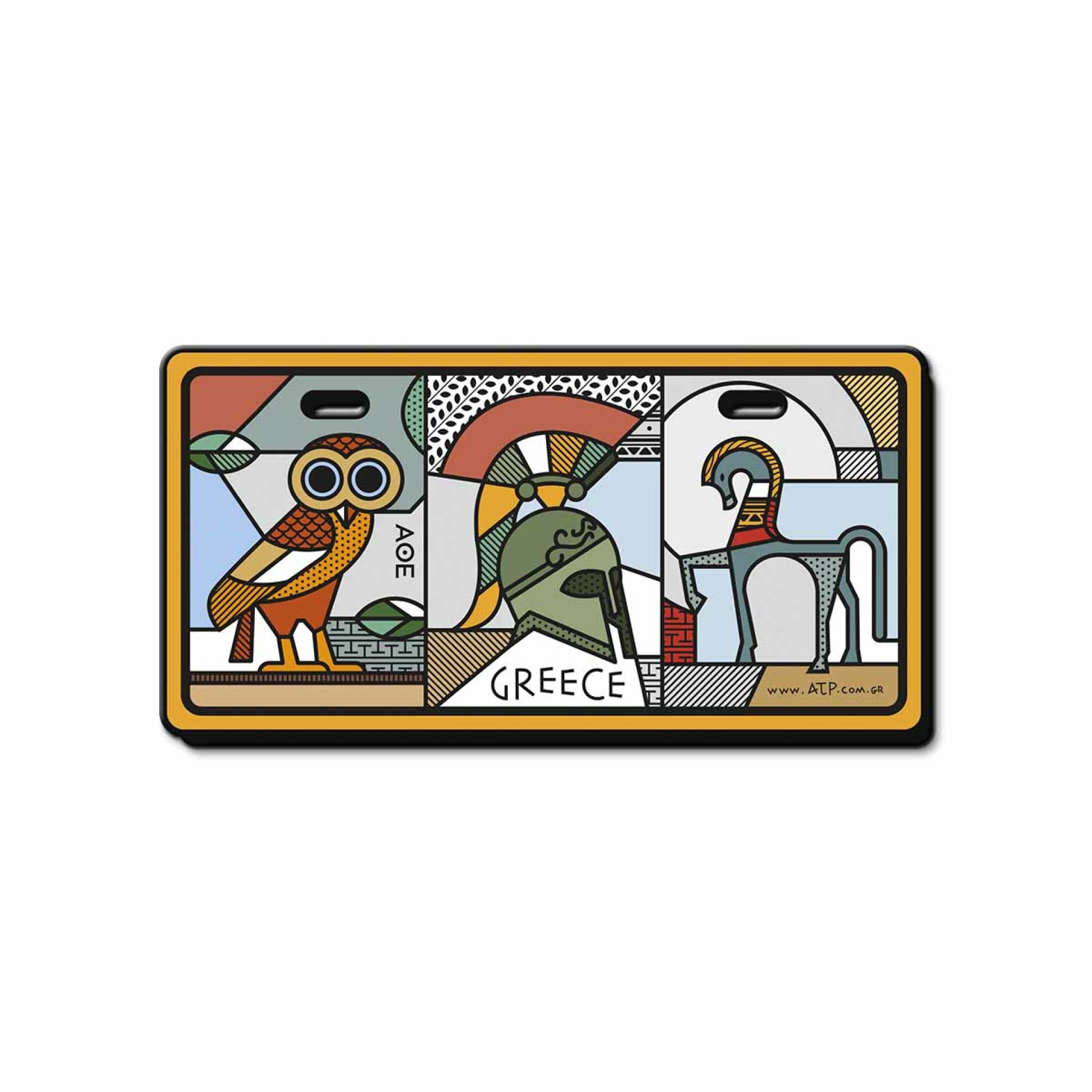 Μεταλλικός ανάγλυφος μαγνήτης με μοντέρνα artistic απεικόνιση αρχαιοελληνικών συμβόλων. Περιλαμβάνει κουκουβάγια της Αθηνάς, αρχαίο Έλληνα πολεμιστή και μυθικό άλογο, σε αφαιρετικό στιλ με ζωντανά χρώματα και παραδοσιακά ελληνικά μοτίβα. Ένα μοναδικό και πρωτότυπο αναμνηστικό για όσους αγαπούν την Τέχνη και την Ελλάδα. Διάσταση: 6,5 x 13 cm Κατασκευή υψηλής ποιότητας με ανθεκτικό μαγνήτη — κατάλληλο για κάθε μεταλλική επιφάνεια.