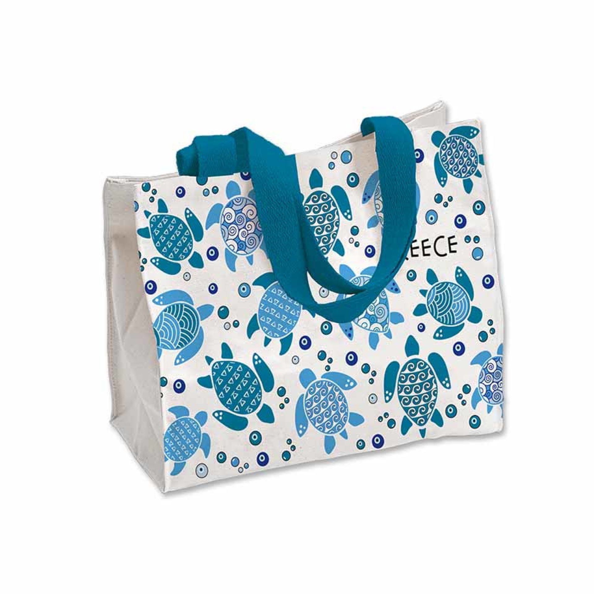 Κατασκευασμένη από ανθεκτικό ύφασμα, με γαλαζοπράσινες χειρολαβές και ευρύχωρο εσωτερικό, είναι ιδανική για την παραλία, τη βόλτα ή την καθημερινότητα.