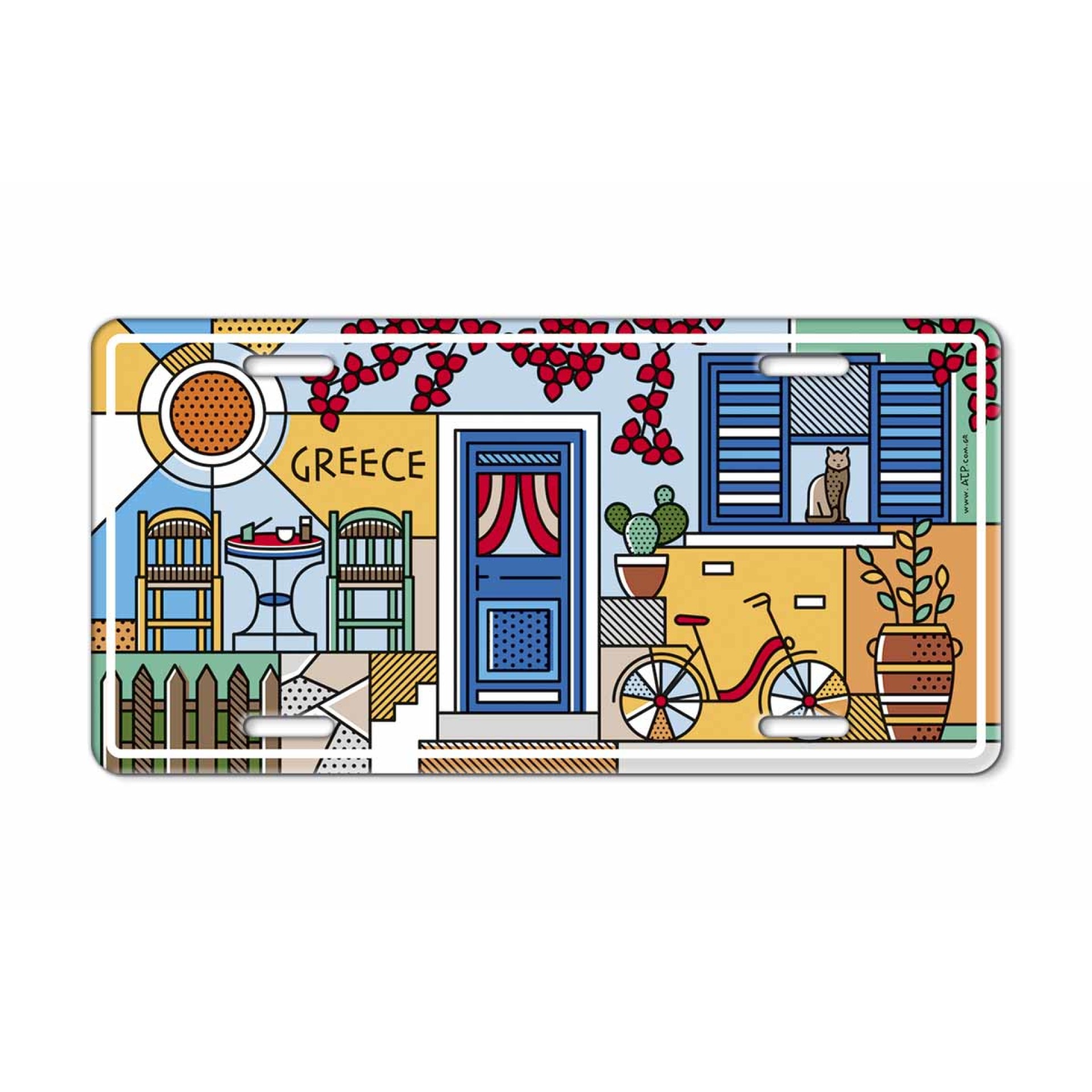 Μεταλλική ανάγλυφη πινακίδα με γοητευτικό νησιώτικο σχέδιο που αποτυπώνει την αυθεντική ελληνική καθημερινότητα. Παραδοσιακό καφενείο με τραπεζάκι και καρέκλες, ποδήλατο, ανθισμένη βουκαμβίλια, γάτα στο παράθυρο και γεμάτη χρώμα αυλή – μια εικόνα που θυμίζει γραφικά χωριά και σοκάκια της Ελλάδας. Κατασκευασμένη από υψηλής ποιότητας μέταλλο με ανάγλυφη εκτύπωση, συνδυάζει αντοχή και καλαίσθητο design. Ιδανική για διακόσμηση σε σπίτι, κουζίνα, εξοχικό, καφέ, ταβέρνα, bar ή τουριστικό κατάστημα. Ένα ξεχωριστό δώρο για όσους αγαπούν την Ελλάδα, την παράδοση και το χαλαρό μεσογειακό lifestyle. Μέγεθος: 15 x 30 cm Υλικό: Μέταλλο Εκτύπωση: Ανάγλυφη Στήριξη: Τρύπες στερέωσης για εύκολη τοποθέτηση