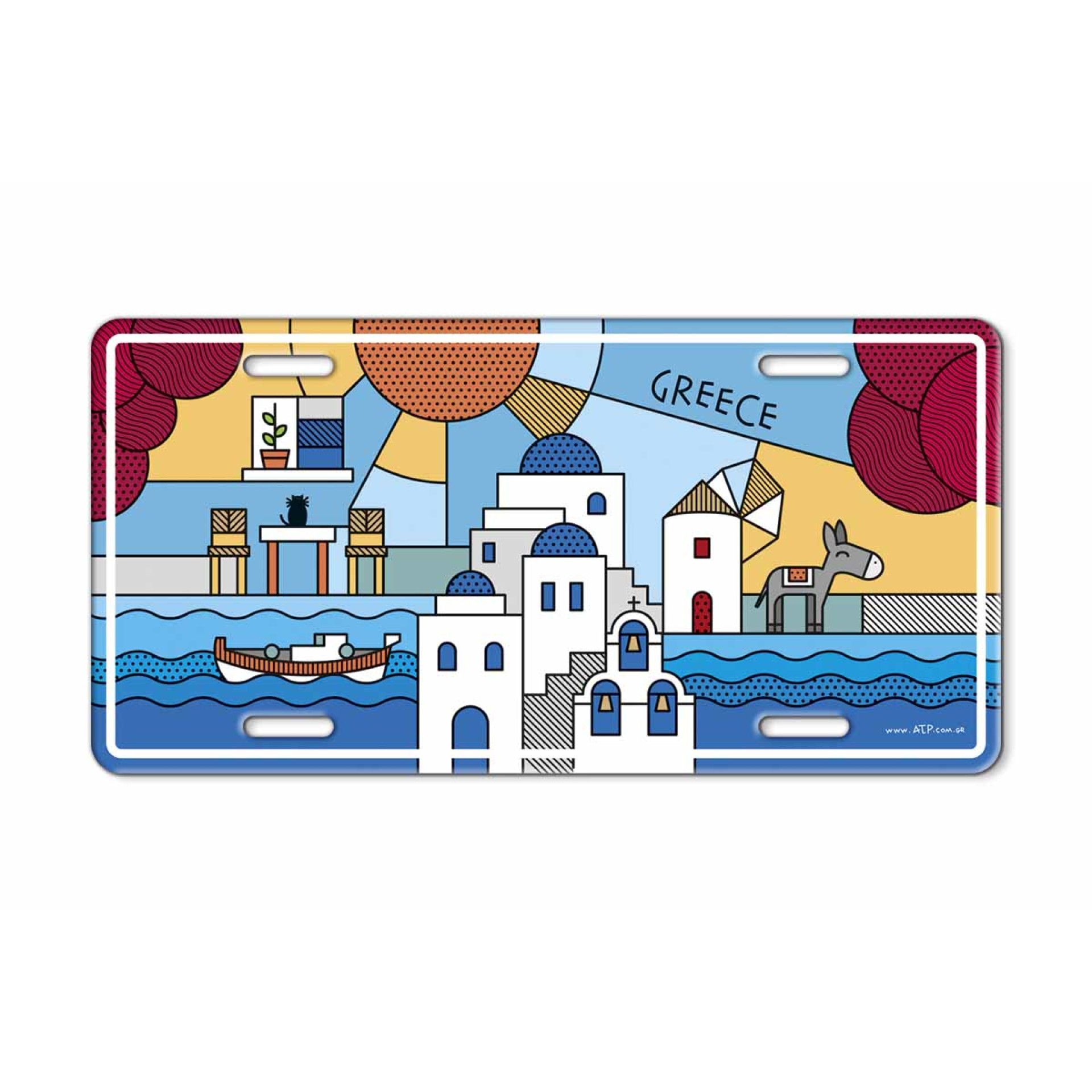 Μεταλλική ανάγλυφη πινακίδα με το σχέδιο «Μπλε του Αιγαίου», εμπνευσμένο από τα κυκλαδίτικα νησιά και την ανεμελιά του ελληνικού καλοκαιριού. Λευκά σπιτάκια με μπλε τρούλους, ανεμόμυλος, γαϊδουράκι, ψαροκάικο και το βαθύ μπλε της θάλασσας δημιουργούν μια πολύχρωμη, μοντέρνα και ζωντανή σύνθεση. Ζεστές αποχρώσεις, καθαρές γραμμές και pop-art αισθητική που φέρνει στο σπίτι τη μαγεία του Αιγαίου. Κατασκευασμένη από υψηλής ποιότητας μέταλλο με ανάγλυφη εκτύπωση για ιδιαίτερη υφή και αντοχή. Ιδανική για διακόσμηση σε σπίτι, εξοχικό, ξενοδοχείο, Airbnb, καφέ, bar, μεσογειακό εστιατόριο ή τουριστικό κατάστημα. Τέλειο δώρο για λάτρεις των Κυκλάδων και των ελληνικών καλοκαιρινών εικόνων. Μέγεθος: 15 x 30 cm Υλικό: Μέταλλο Εκτύπωση: Ανάγλυφη Στήριξη: Τρύπες στερέωσης για εύκολη τοποθέτηση