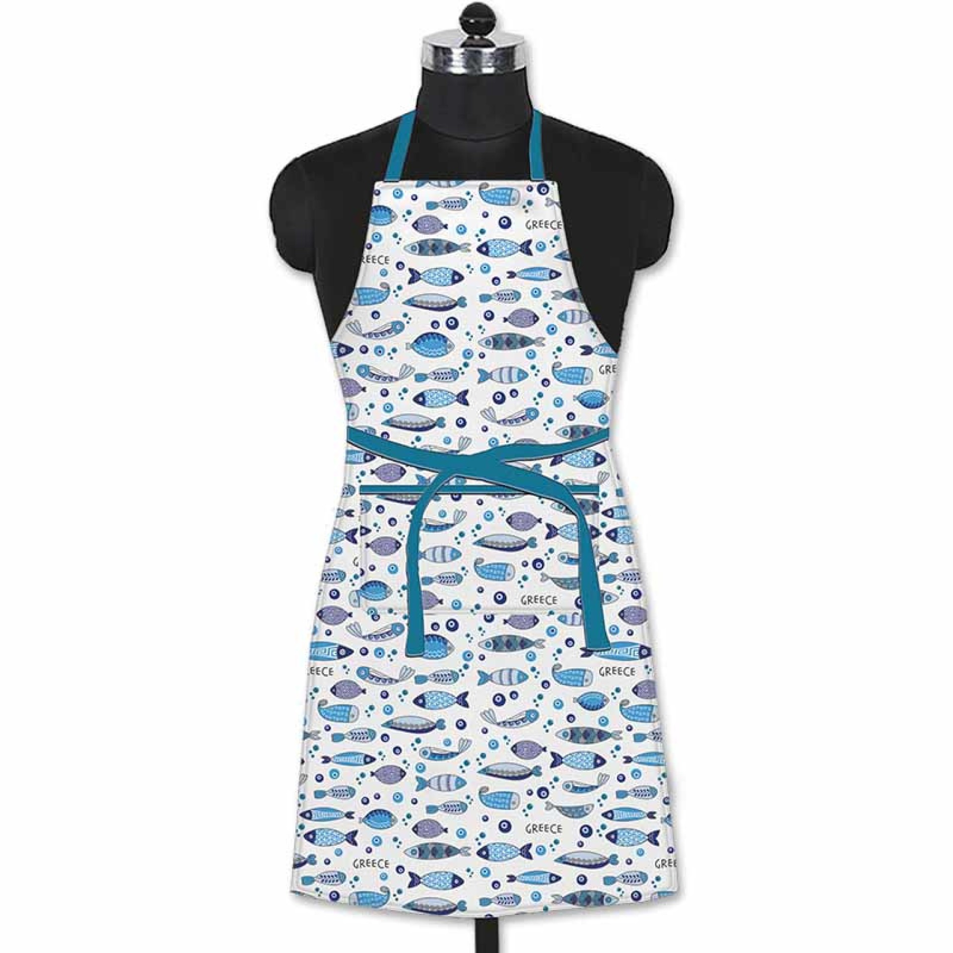 Η ποδιά “Ψάρια” είναι εμπνευσμένη από το ελληνικό καλοκαίρι και τη θάλασσα του Αιγαίου. Με σχέδια από πολύχρωμα ψαράκια και παραδοσιακά μοτίβα σε αποχρώσεις του μπλε, συνδυάζει την ελληνική παράδοση με μοντέρνο design. Ιδανική για όσους αγαπούν το μαγείρεμα και θέλουν μια πινελιά από Ελλάδα στην κουζίνα τους! Διαθέτει μπροστινή τσέπη, ρυθμιζόμενο λουρί λαιμού και δέσιμο στη μέση για άνετη εφαρμογή. Διαστάσεις: 70 × 60 cm Υλικό: 100% βαμβάκι Χρώματα: Μπλε, γαλάζιο, λευκό Σχέδιο: Ψάρια Πλύσιμο: στους 30°C Συνδυάζεται με το σετ γάντι & πιάστρα “Fish” της ίδιας σειράς και αποτελεί υπέροχο ελληνικό δώρο ή αναμνηστικό.