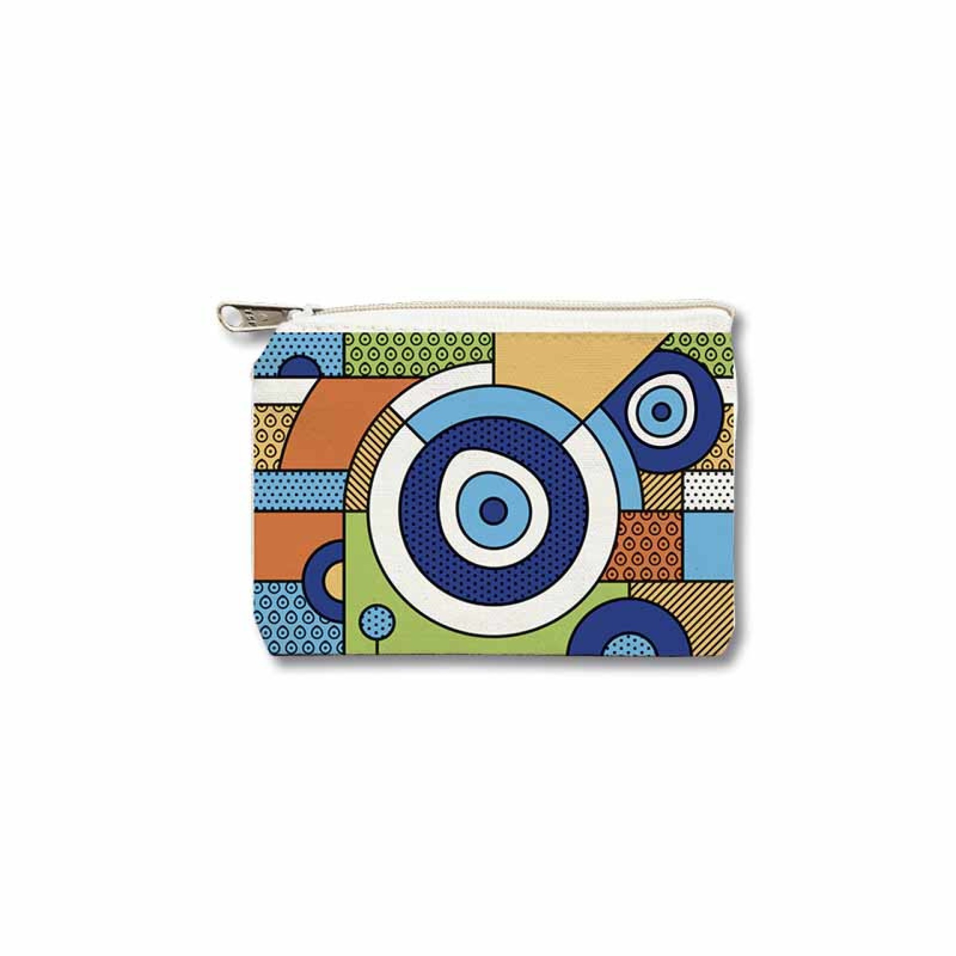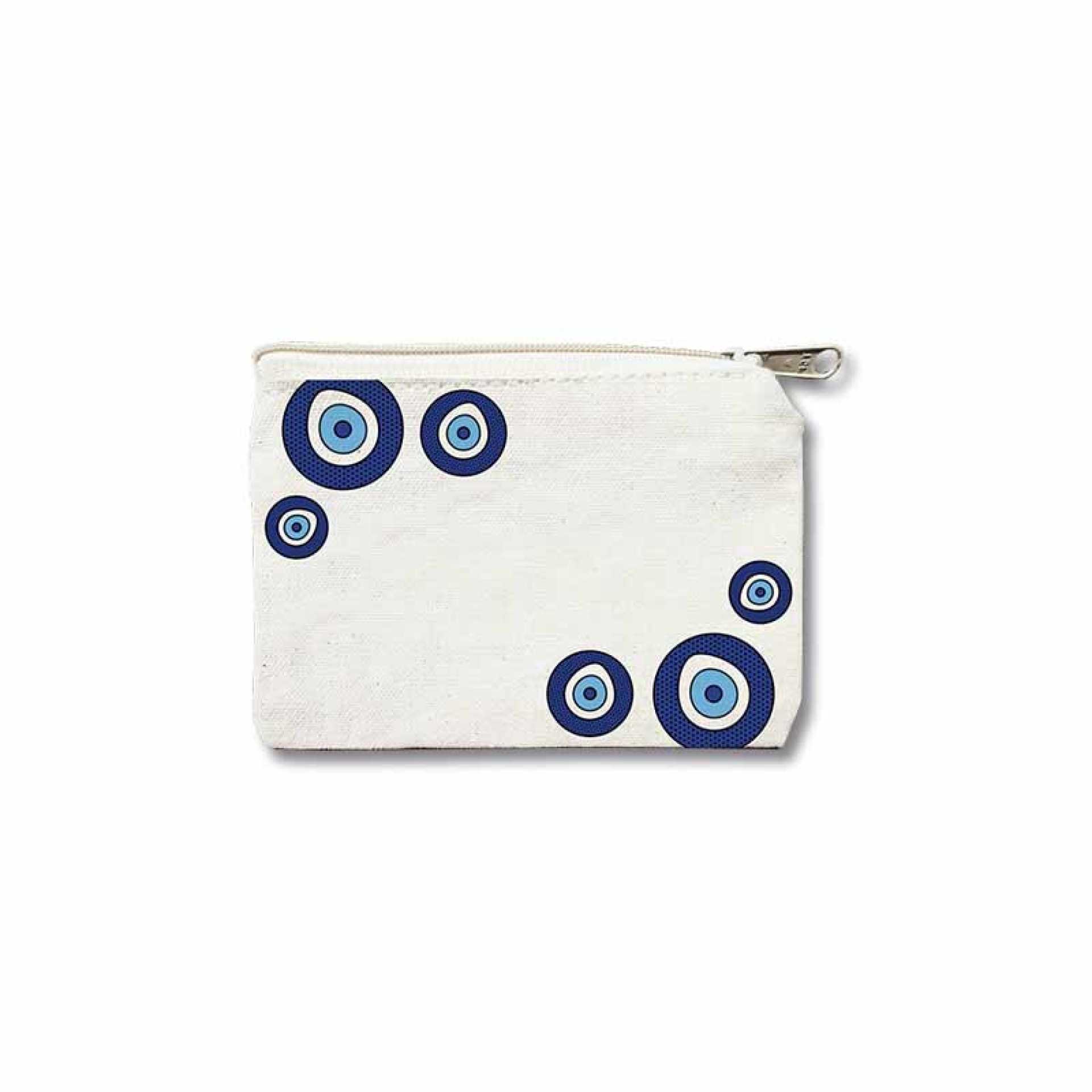 Ένα εντυπωσιακό πορτοφολάκι με σχέδιο εμπνευσμένο από το “μάτι”, σε πολύχρωμη pop-art εκδοχή. Οι αποχρώσεις του μπλε, του πράσινου και του πορτοκαλί συνδυάζονται αρμονικά, δημιουργώντας ένα αποτέλεσμα γεμάτο θετική ενέργεια και ελληνική ζωντάνια. Ένα μοντέρνο φυλαχτό που συνδυάζει παράδοση και τέχνη, ιδανικό για όσους αγαπούν το design με έντονη προσωπικότητα. Διαστάσεις: 10.5 Χ 15.5 cm