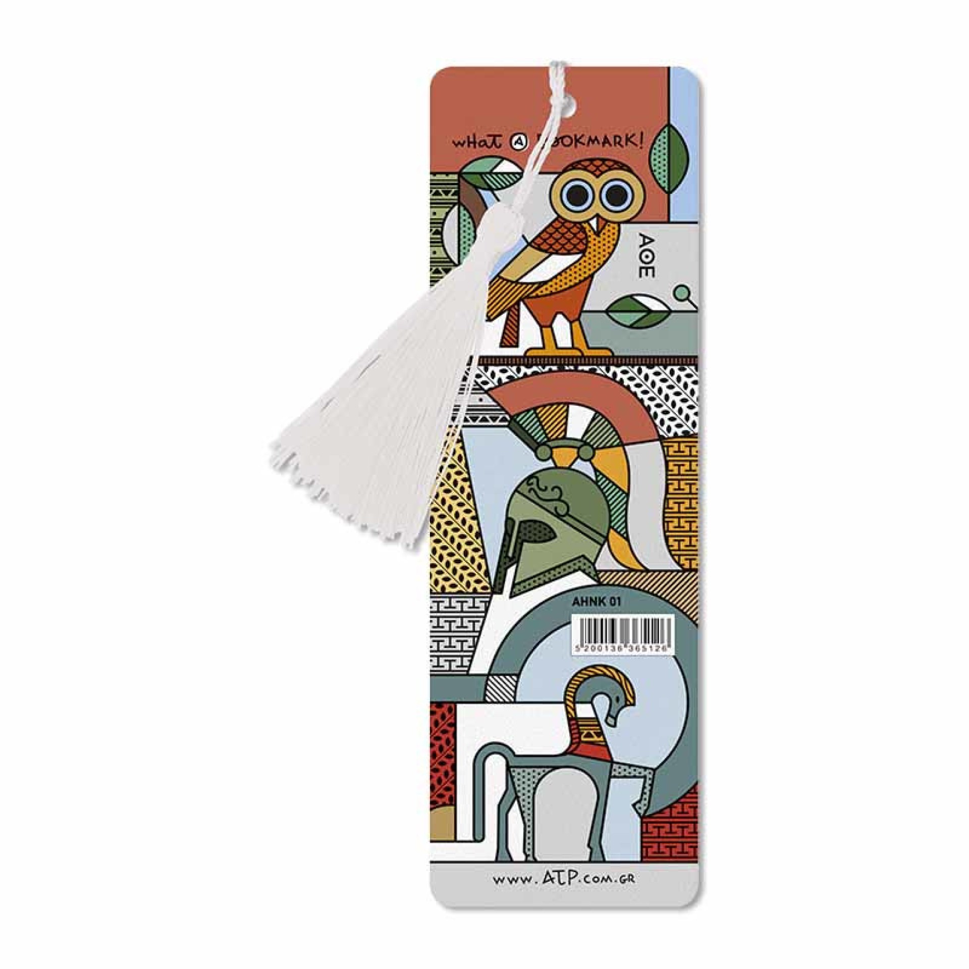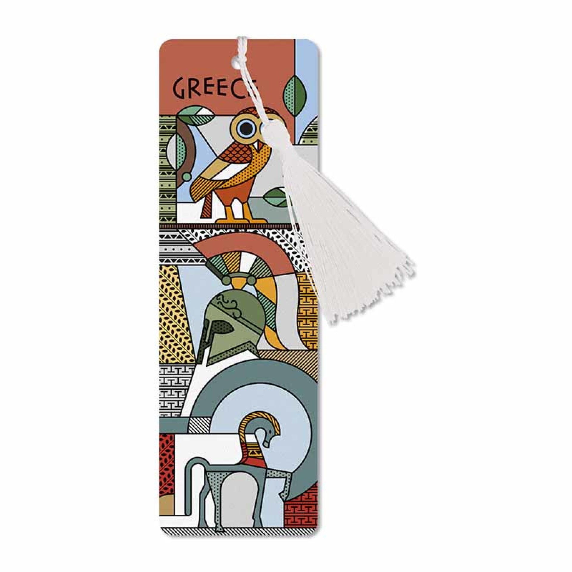 Ο σελιδοδείκτης Αρχαία Ελλάδα συνδυάζει χαρακτηριστικά στοιχεία της αρχαίας ελληνικής ιστορίας και τέχνης σε ένα μοντέρνο γραφιστικό σχέδιο. Απεικονίζει την κουκουβάγια της Αθηνάς, τον πολεμιστή και τον Δούρειο Ίππο, σε ένα πολύχρωμο κολάζ εμπνευσμένο από την πολιτιστική κληρονομιά της Ελλάδας. Κατασκευασμένος από ανθεκτικό χαρτόνι, με ματ πλαστικοποίηση και λευκό κρόσσι, αποτελεί ένα κομψό αξεσουάρ για κάθε βιβλίο ή ένα αυθεντικό ελληνικό σουβενίρ. Χαρακτηριστικά: Υλικό: Ανθεκτικό χαρτόνι με ματ πλαστικοποίηση Διαστάσεις: 18 × 5,7 εκ. Με λευκό κρόσσι Σχέδιο: Αρχαία Ελλάδα Ιδανικό για αναμνηστικό ή δώρο