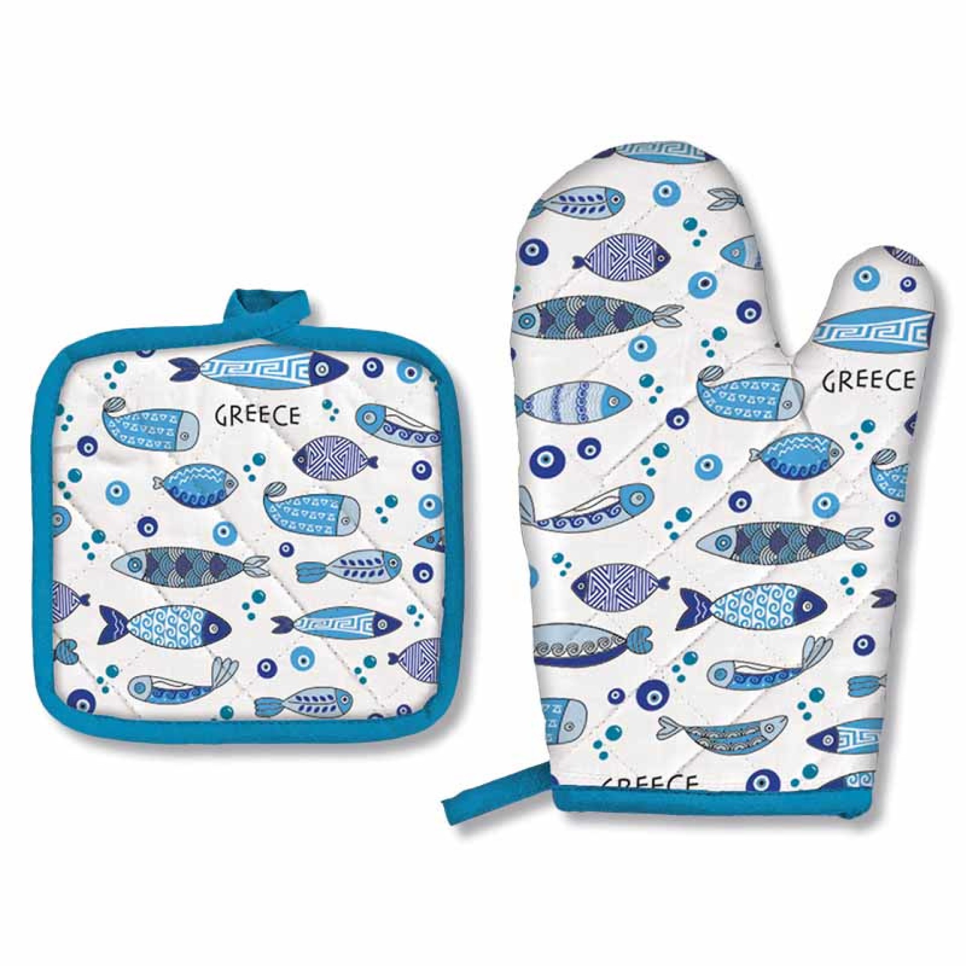 Σετ Γάντι Κουζίνας & Πιάστρα “Ψάρια”