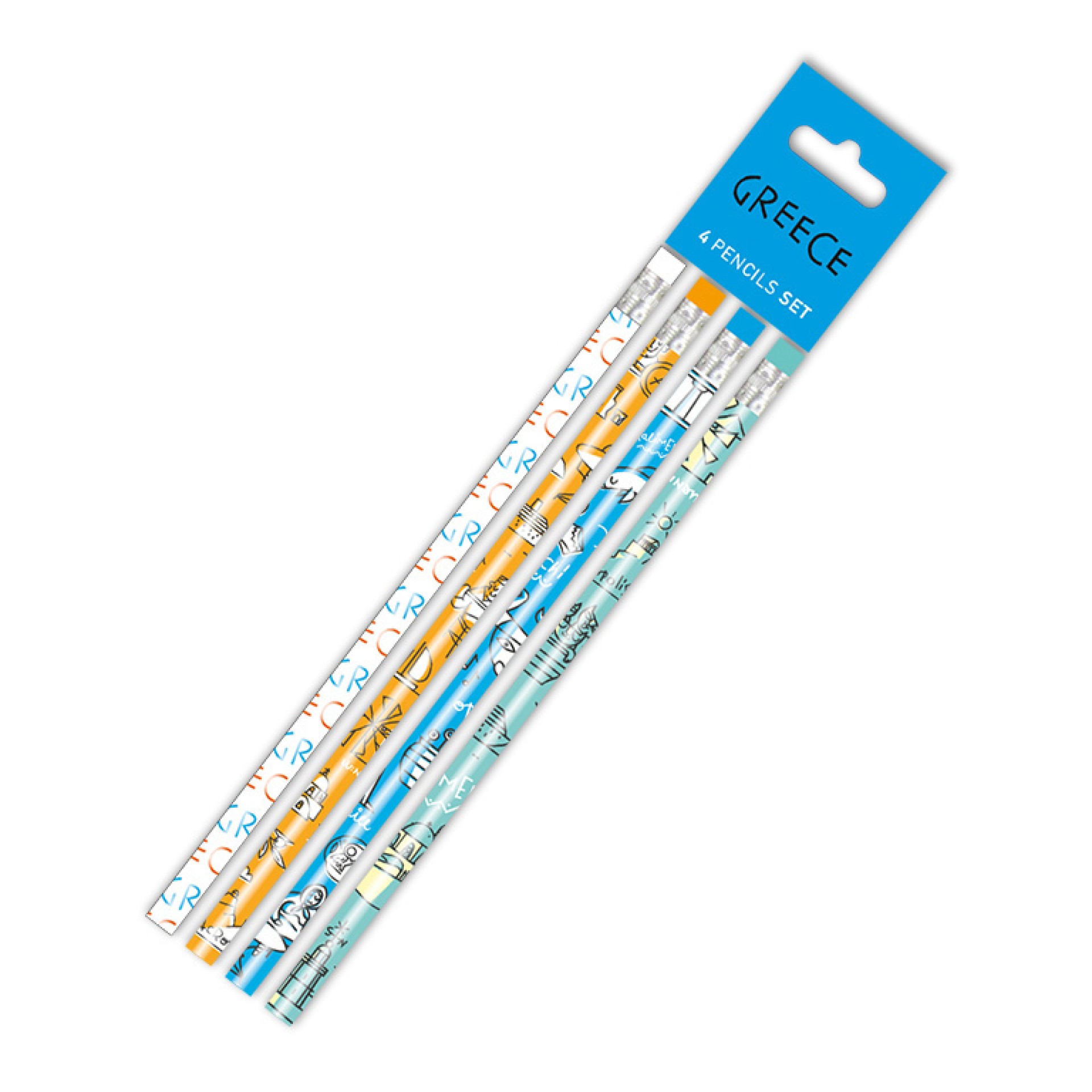 Το σετ περιλαμβάνει 4 ξύλινα μολύβια υψηλής ποιότητας με γόμα στην άκρη, ιδανικά για καθημερινή χρήση, σχολείο, γραφείο ή ως αναμνηστικό δώρο από την Ελλάδα.