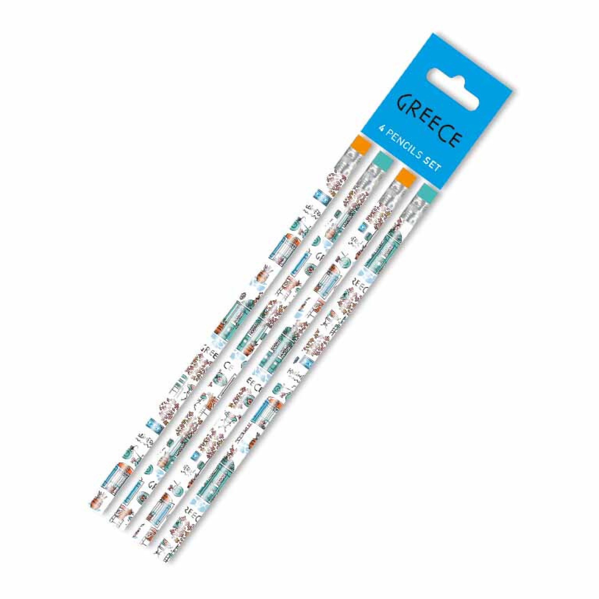 Το σετ περιλαμβάνει 4 ξύλινα μολύβια υψηλής ποιότητας με γόμα στο πίσω μέρος, ιδανικά για καθημερινή χρήση, σχέδιο ή αναμνηστικό δώρο.
