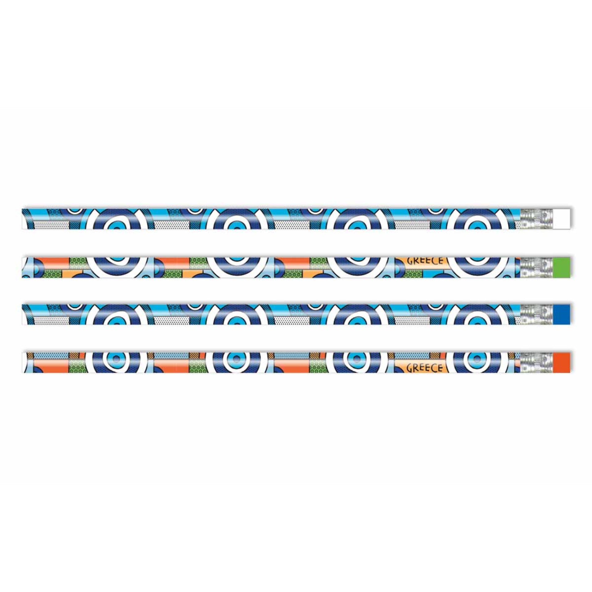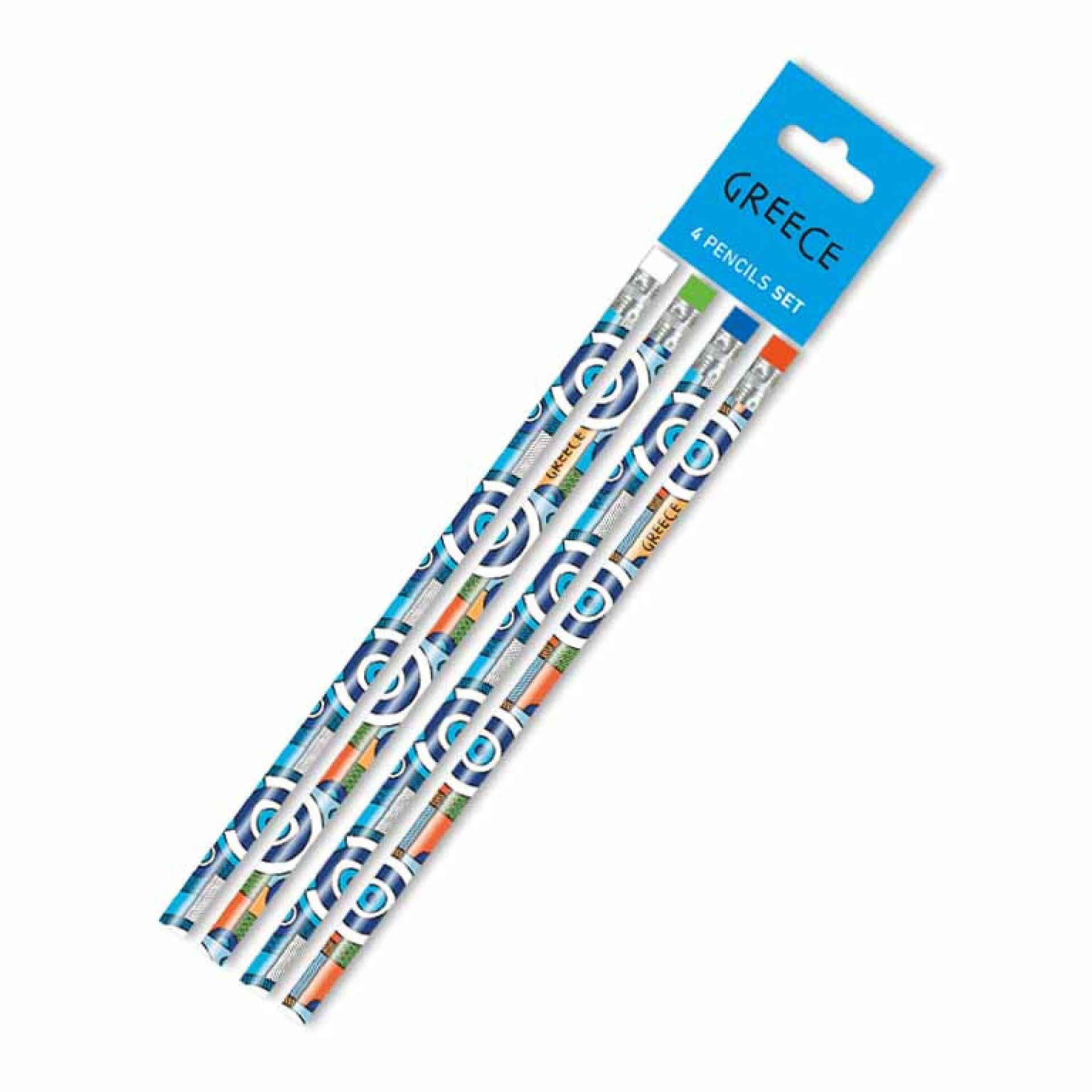 Κάθε μολύβι έχει πολύχρωμο σχέδιο και γόμα στο πίσω μέρος, καθιστώντας το ιδανικό τόσο για χρήση όσο και ως μοντέρνο σουβενίρ από την Ελλάδα.