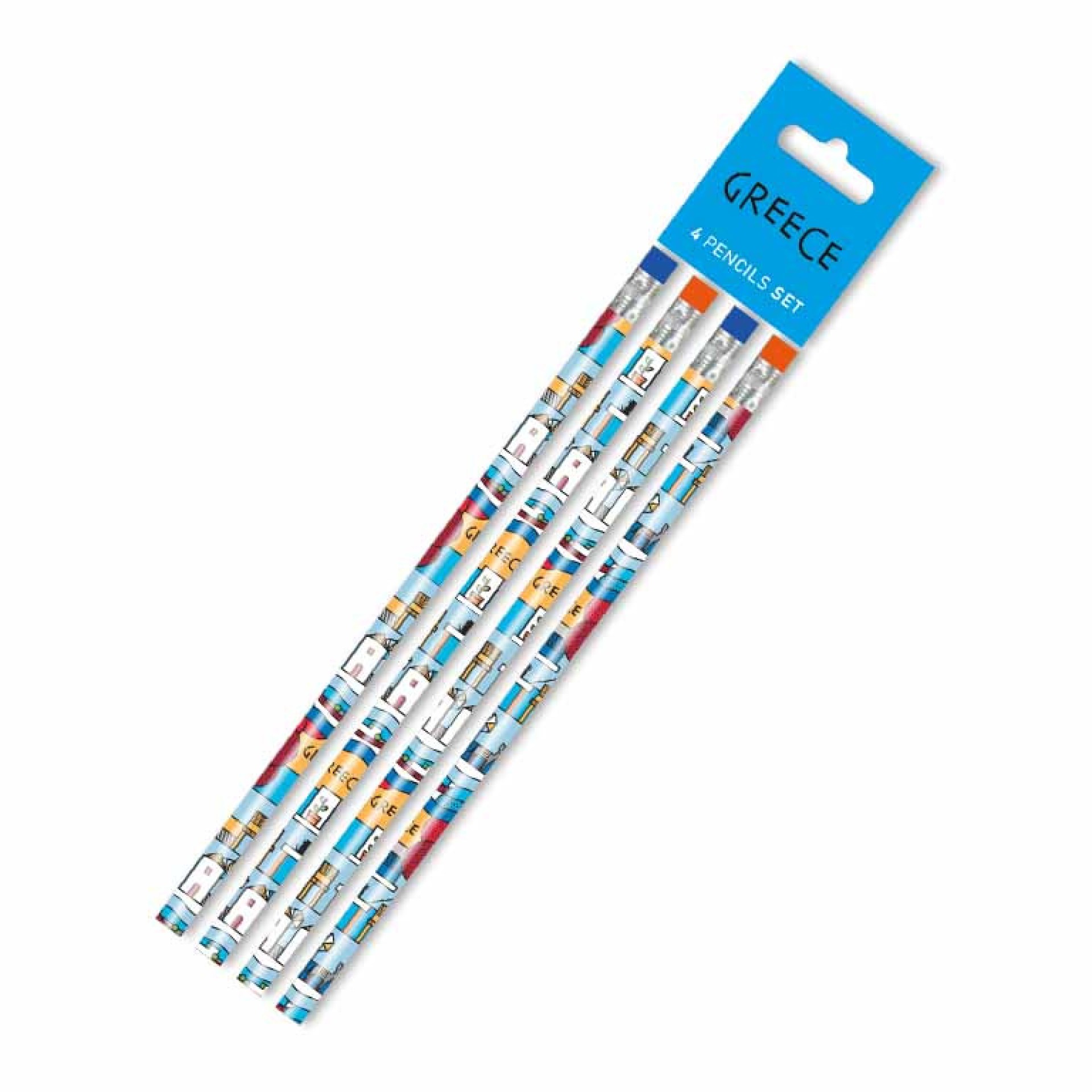 Ανακαλύψτε τη μοντέρνα όψη της Ελλάδας με το σετ μολυβιών Μπλε του Αιγαίου! Με μοναδικό, γραμμικό σχέδιο που απεικονίζει ελληνικά νησιά, παραδοσιακά σπίτια, ανεμόμυλους και γαϊδουράκια, το σετ αυτό φέρνει την ελληνική αισθητική στο γραφείο σας με καλλιτεχνικό τρόπο. Κάθε μολύβι διαθέτει πολύχρωμο σχέδιο με γεωμετρικές λεπτομέρειες και τελείωμα με γόμα, για πρακτική και καθημερινή χρήση. Ένα όμορφο αναμνηστικό δώρο από την Ελλάδα ή ιδανική προσθήκη για συλλογή γραφικών ειδών. Χαρακτηριστικά: Περιλαμβάνει 4 ξύλινα μολύβια υψηλής ποιότητας. Μοντέρνος σχεδιασμός Μπλε του Αιγαίου με έντονα χρώματα. Γόμα στο πίσω μέρος κάθε μολυβιού. Ιδανικά για σχολείο, γραφείο ή τουριστικό δώρο. Υλικό: Ξύλο, γόμα. Συσκευασία: Σετ 4 τεμαχίων με κάρτα “Greece”.