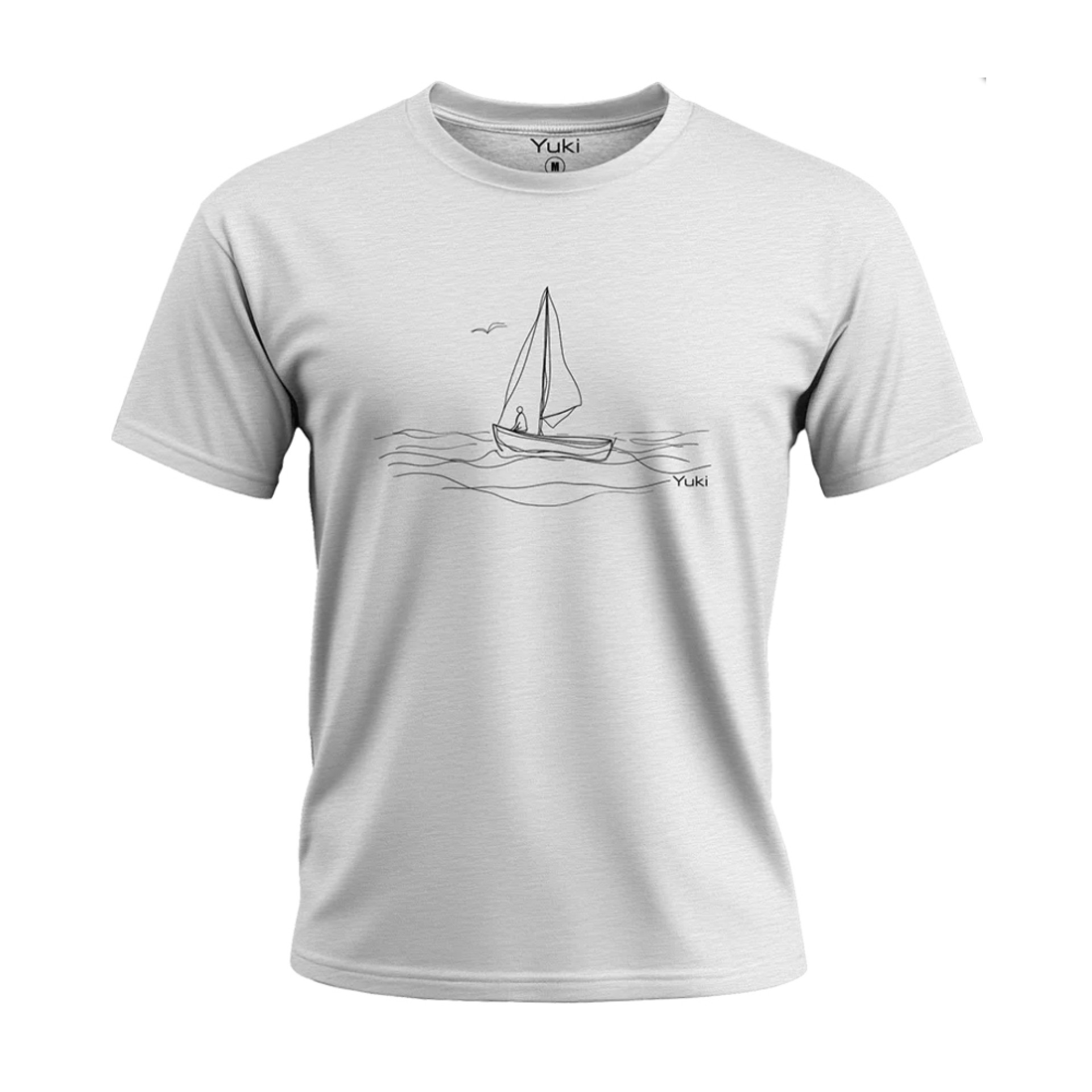 Ανδρικό κοντομάνικο μπλουζάκι Yuki σε λευκό χρώμα με minimal σχέδιο ιστιοπλοϊκού. Το απλό και κομψό line art αποπνέει ηρεμία και ελευθερία, θυμίζοντας καλοκαιρινές στιγμές στη θάλασσα. Ιδανικό για όσους αγαπούν τη φύση, τη θάλασσα και το καθαρό στυλ. Χαρακτηριστικά: Υλικό: 100% βαμβάκι Χρώμα: Λευκό Σχέδιο: Ιστιοπλοϊκό στη θάλασσα Κανονική γραμμή Διαθέσιμα μεγέθη: S, M, L, XL, XXL