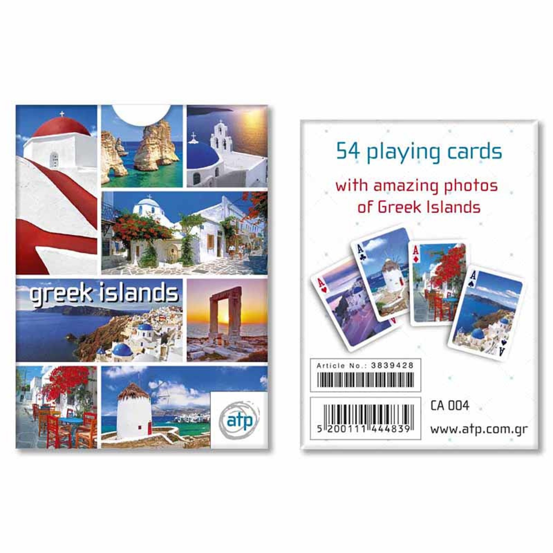 Τράπουλα 54 φύλλων με εντυπωσιακές φωτογραφίες από τα ελληνικά νησιά. Κλασικό μέγεθος, υψηλής ποιότητας χαρτί και ζωντανή εκτύπωση που αναδεικνύει τη μαγεία του Αιγαίου και του Ιονίου.
