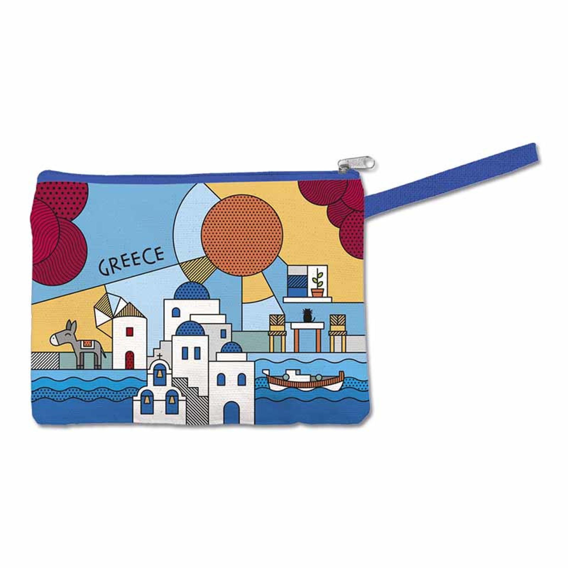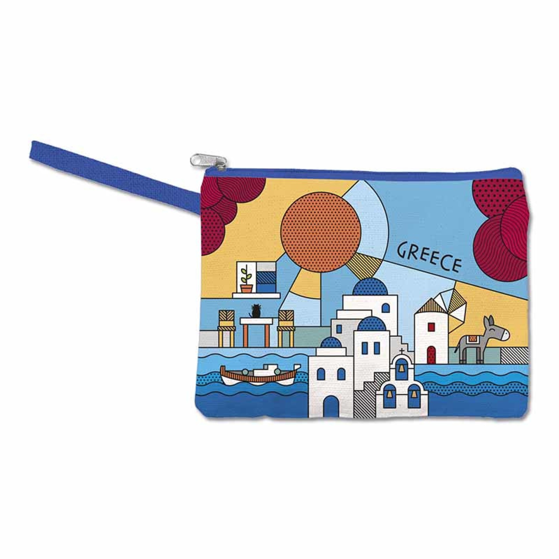 Φέρε την ομορφιά των ελληνικών νησιών παντού μαζί σου! Αυτό το νεσεσέρ, εμπνευσμένο από τα λευκά κυκλαδίτικα σπίτια, τους ανεμόμυλους, το γαλάζιο του Αιγαίου και τον ήλιο του ελληνικού καλοκαιριού, αποτυπώνει με μοντέρνο τρόπο τη μαγεία της Ελλάδας. Οι γεωμετρικές γραμμές και τα ζωηρά χρώματα δημιουργούν μια μοναδική καλλιτεχνική σύνθεση που εκπέμπει χαρά, φως και θετική ενέργεια. Κατασκευασμένο από ανθεκτικά υλικά, με ποιοτικό φερμουάρ και πρακτικό λουράκι, είναι ιδανικό για ταξίδια, καλλυντικά ή την καθημερινή σου τσάντα. Ένα φωτεινό και καλοκαιρινό αξεσουάρ που μεταφέρει το ελληνικό καλοκαίρι όπου κι αν πας! Διαστάσεις: 19 Χ 24 cm