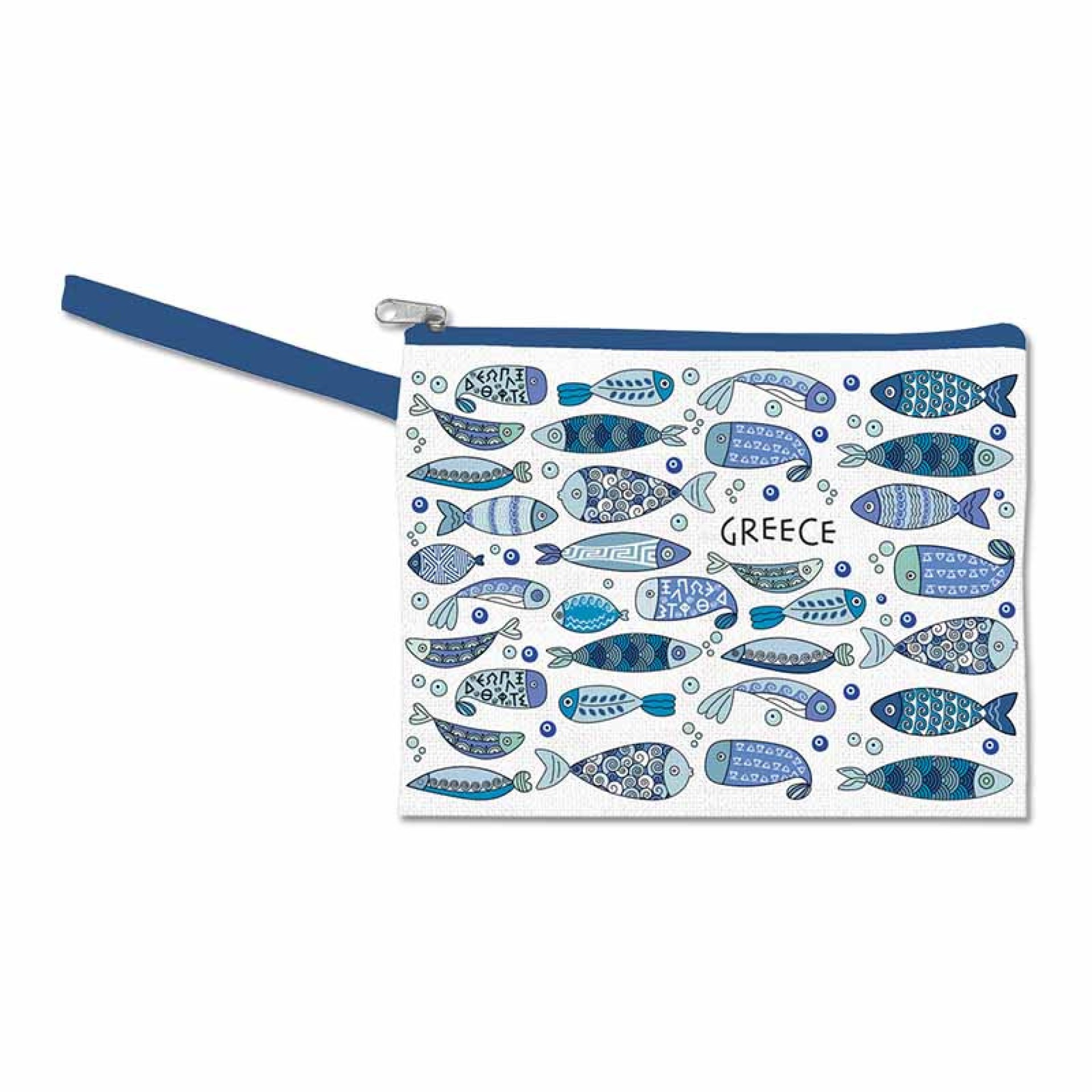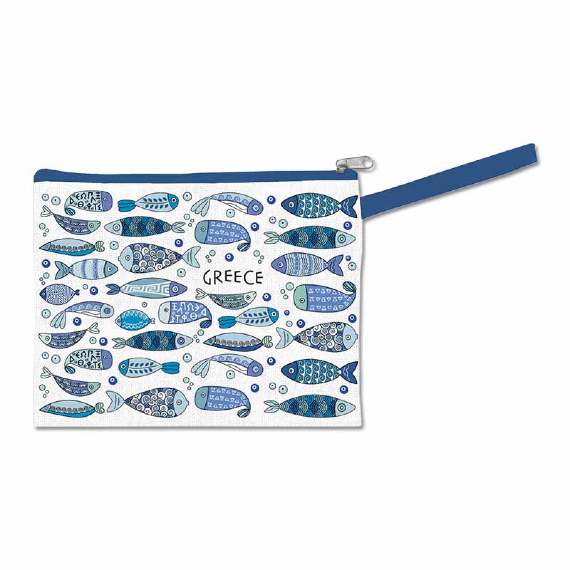 Ένα φωτεινό και παιχνιδιάρικο νεσεσέρ που αποπνέει άρωμα ελληνικού καλοκαιριού! Το σχέδιο με τα πολύχρωμα ψάρια, σε αποχρώσεις του μπλε και του τιρκουάζ, θυμίζει τη γαλήνη του Αιγαίου και τα καθαρά νερά των ελληνικών νησιών. Κάθε λεπτομέρεια — από τα σχέδια στις ουρές των ψαριών έως τις μικρές φυσαλίδες — δημιουργεί μια καλλιτεχνική σύνθεση γεμάτη φρεσκάδα και θετική ενέργεια. Κατασκευασμένο από ανθεκτικά υλικά, με στιβαρό φερμουάρ και πρακτικό λουράκι, είναι ιδανικό για ταξίδια, παραλία, καλλυντικά ή την καθημερινή σου τσάντα. Ένα χαρούμενο αξεσουάρ που θα σε ταξιδεύει κάθε μέρα στην Ελλάδα! Διαστάσεις: 19 Χ 24 cm