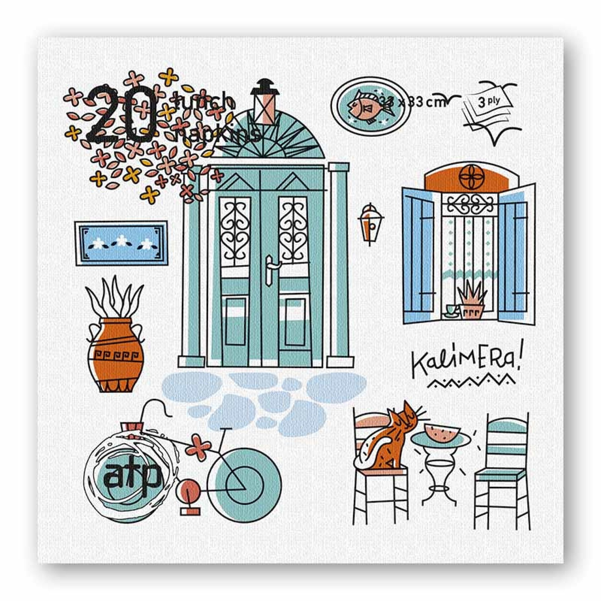 Οι χαρτοπετσέτες είναι ιδανικές για θεματικά τραπέζια, καφέ, εστιατόρια ή ως αναμνηστικό που αποπνέει ελληνική φιλοξενία.