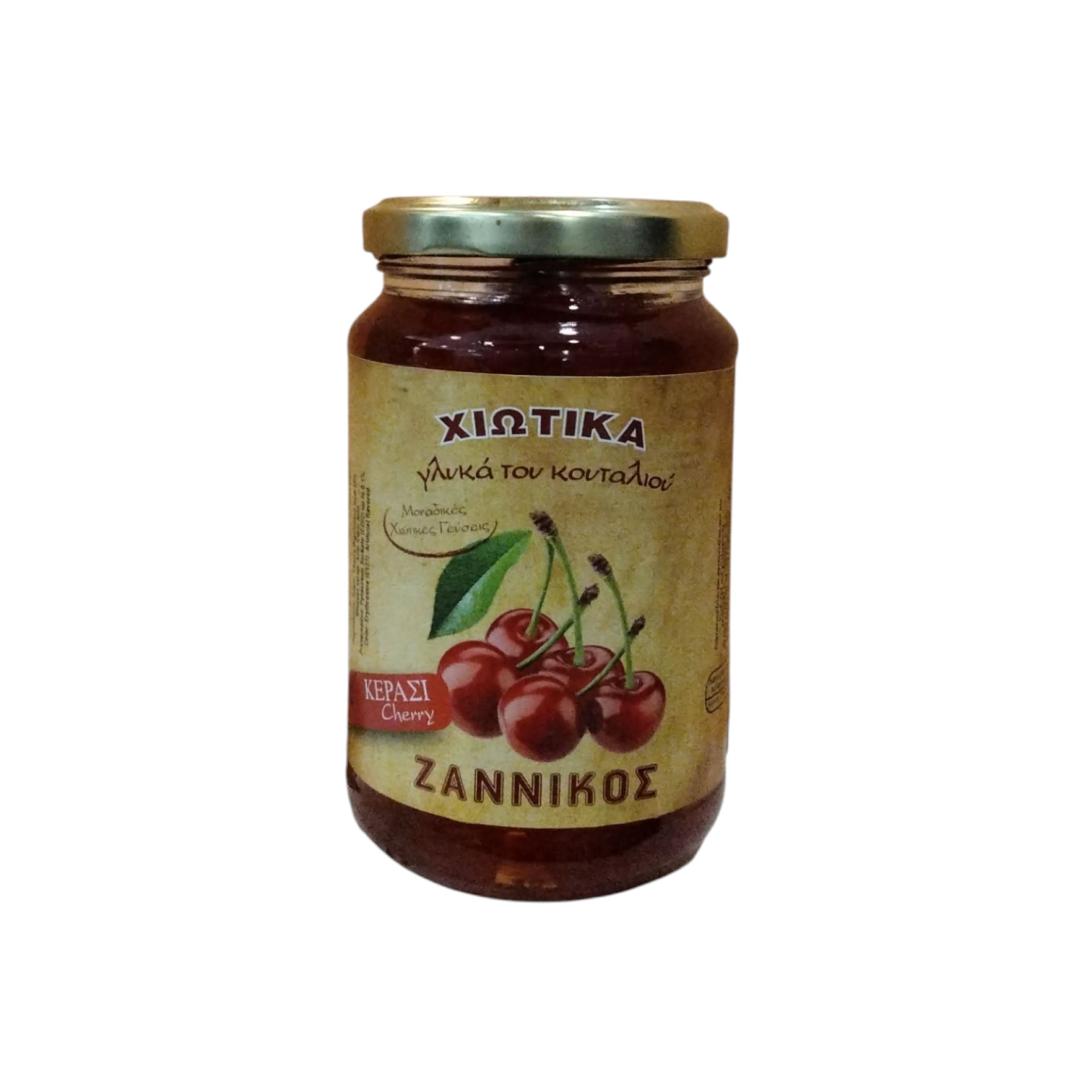 Απολαύστε την παραδοσιακή γεύση του χιώτικου γλυκού του κουταλιού κεράσι από τον οίκο Ζαννικός, φτιαγμένο με αγνά υλικά και φρέσκα κεράσια. Ένα διαχρονικό ελληνικό γλυκό, με ισορροπημένη γλυκύτητα και υπέροχο άρωμα, ιδανικό για να συνοδεύσει το γιαούρτι, το παγωτό ή τον καφέ σας.
